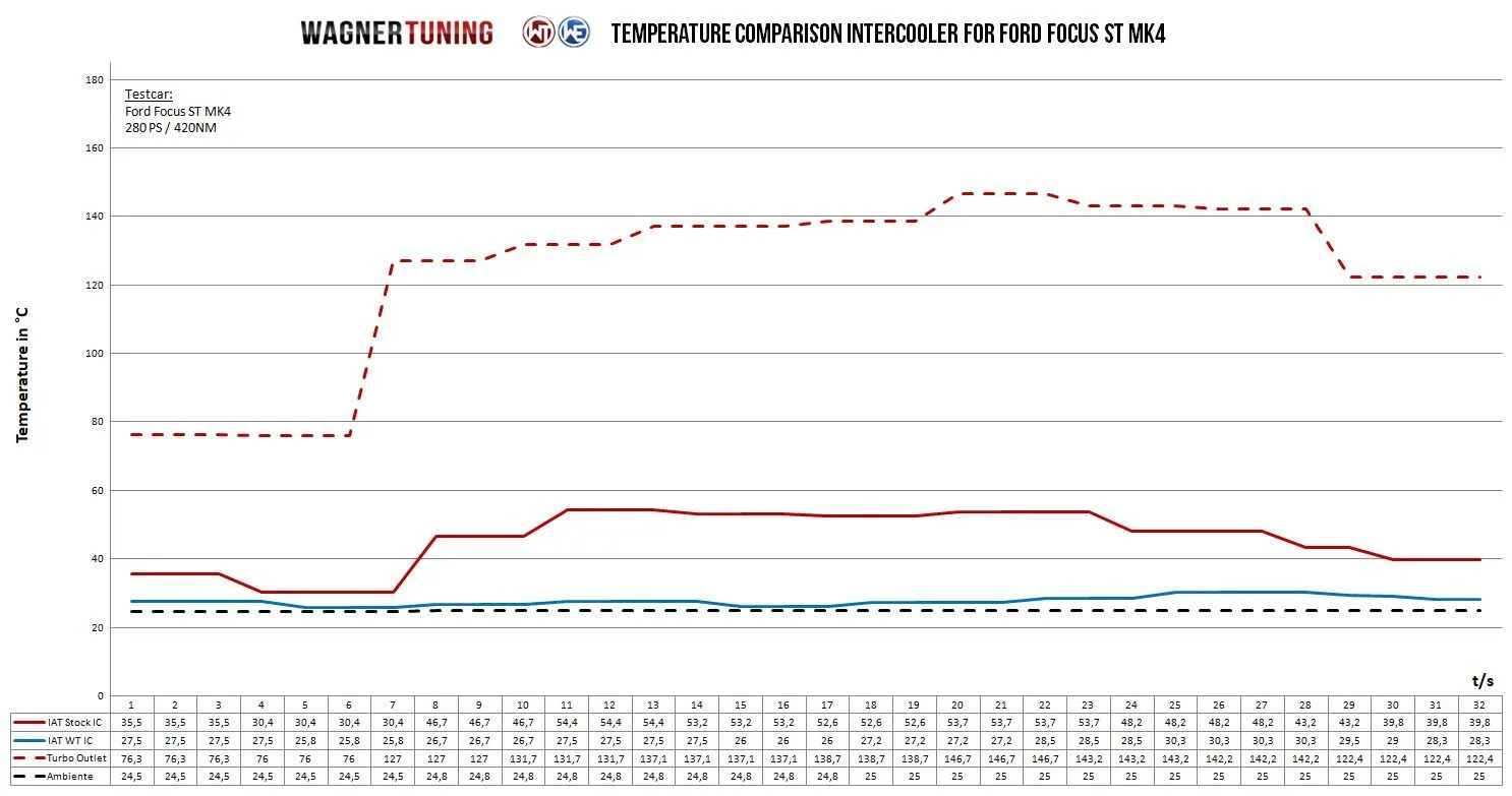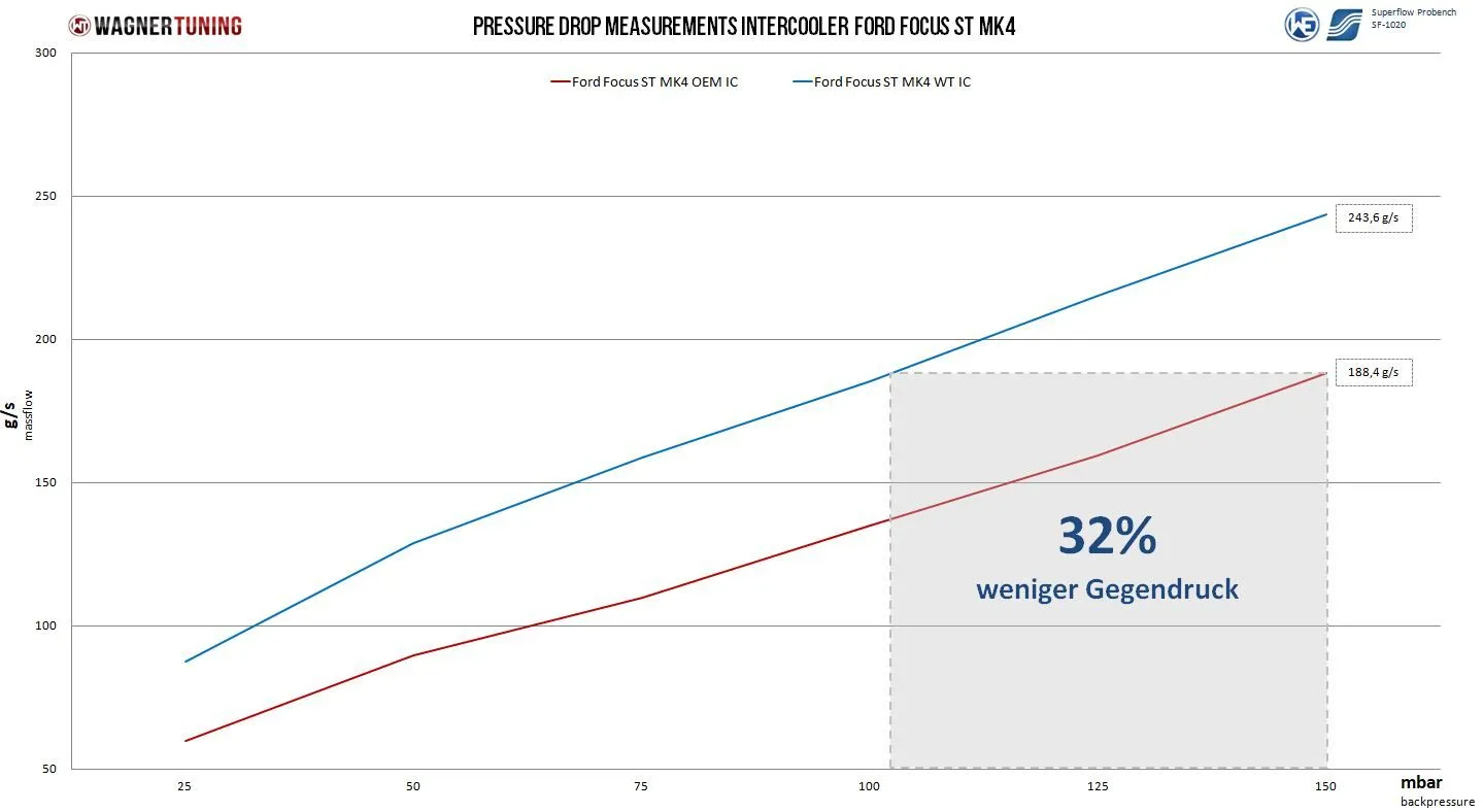 Doświadcz imponującego wzrostu osiągów dzięki naszemu intercoolerowi performance Wagner Tuning!Nasz intercooler performance wyznacza nowe standardy w zakresie sprawności i mocy. Dzięki wymiarom rdzenia 720 mm x 201 mm x 130 mm (stopniowany) oferuje znacznie większą zewnętrzną objętość powietrza doładowującego wynoszącą 15,4 litra w porównaniu z konwencjonalnymi 5,5 litra (OEM). Dzięki nowo opracowanemu rdzeniowi performance high-performance intercooler (bar and plate) zachowany jest odpowiedni przepływ powietrza do sąsiednich podzespołów, takich jak chłodnica wody, a sam intercooler pozostaje lekki i kompaktowy. Przy całkowitej masie zaledwie 11,9 kg jest prawdziwym „lekkim zawodnikiem”.Odlewane aluminiowe komory końcowe powstały z wykorzystaniem CAD i zostały zoptymalizowane przy wsparciu symulacji CFD w celu zapewnienia idealnego przepływu wewnętrznego. Zintegrowane prowadzenie powietrza w komorze końcowej zapewnia równomierne wypełnienie rdzenia Competition high-performance. Wloty i wyloty intercoolera zostały powiększone do Ø 65 mm, co wymagało wzmocnienia przewodów silikonowych. Nasz intercooler charakteryzuje się wyraźnie niższym całkowitym przeciwciśnieniem niż standardowy intercooler. Dodatkowo wszystkie nasze intercoolery mają powłokę antykorozyjną o znakomitych właściwościach przewodzenia ciepła, co gwarantuje trwałe i optymalne chłodzenie oraz imponujący wzrost osiągów.Montaż polega na zastąpieniu intercoolera OEM i jest łatwy dzięki naszym szczegółowym instrukcjom montażu. Kładziemy duży nacisk na ciągłe monitorowanie jakości wszystkich naszych produktów, abyś zawsze otrzymywał najwyższą jakość.Wynieś osiągi na nowy poziom dzięki naszemu intercoolerowi performance i odkryj pełny potencjał swojego pojazdu!Zestaw Wagner Tuning Performance Intercooler pasuje do następującego modelu:Ford Focus ST MK4 2.3Ecoboost.*Dodatkowe dopasowania dla pojazdów z Adaptive Cruise Control (ACC). Patrz instrukcja montażu.Part number: 200001174Zestaw zawiera:1 intercooler2 przewody silikonowe4 opaski zaciskowe1 komplet elementów montażowych1 instrukcja montażu
