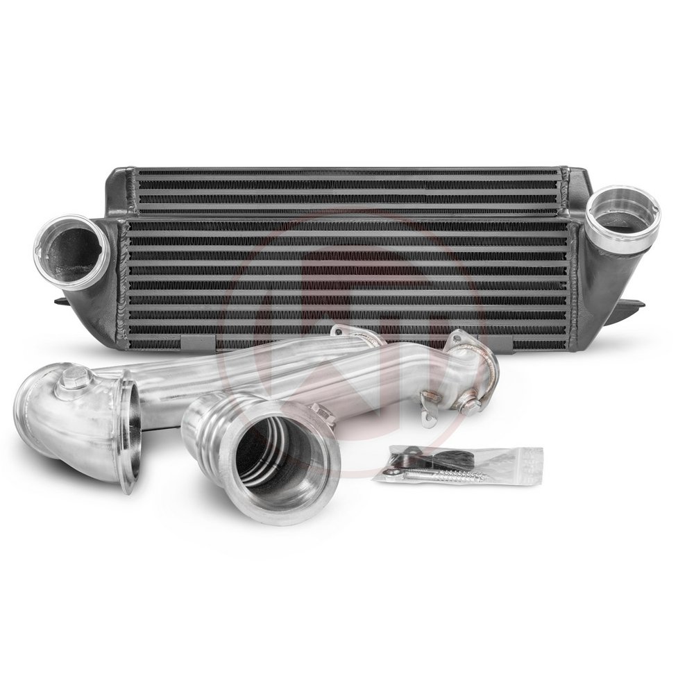 The performance package for the BMW E-serie consists of the Intercooler Upgrade Kit EVO1 and the N54 downpipe kit and fits the following vehicles.BMW 135i E82/E88BMW 1er M E82BMW 335(x)i E90/E91/E92/E93Intercooler Upgrade Kit 200001023This Performance Intercooler has the following core size (520mm x 210mm x 130mm / stepped = 11.752 cm³ ), providing a 85% larger frontalarea and 60% more volume compared to the original intercooler. Our engineers have increased the intercooler core size and efficiency, as well as improved the end tank design to remove any OEM bottlenecks, resulting in increased flow rating and charge cooling properties. High Performance Intercooler Core with turbulators in a stepped design (weight: 9kg). Constructed of the highest quality Bar and Plate intercooler cores combined with cast aluminum optimized by CAD. Flow analyses and simulations were created to optimise the design for best possible internal airflow. This intercooler is the best choice when it comes to performance gains and low intake temperatures. A lot less pressure drop then OEM Intercooler. Anti corrosion protective coating with perfect thermal heat dissapating character. Optimal cooling with clearly more power. Kit is ready for installation (plug & play), using the stock plumming. No cutting or bumper removal required. Fitment is easy, replacing the OEM intercooler. All of our products undergo rigorous quality control.Kit comes with:intercooler blackmounting materialinstallation instructionDownpipe kit BMW N54 Engine 500001002true 70mm Downpipesmade from 1.4301 (SS304) stainless steelno catalytic converters*1:1 exchange to OEM unitsCAD designedfor track and testwith flex part*ECU will need to be coded to avoid engine management light errors.