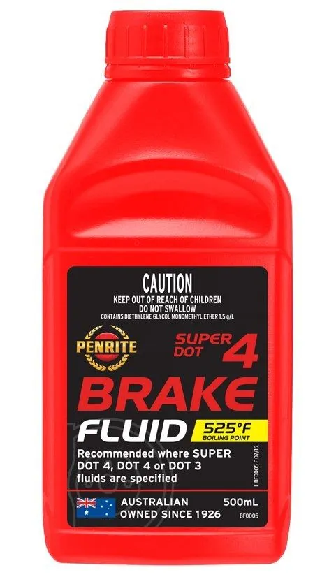 Penrite Super DOT 4 Brake Fluid 0,5L Płyn hamulcowy bez zawartości ropy naftowej, przeznaczony do wielu zastosowań w układach hamulcowych i sprzęgła, gdzie wymagane są produkty DOT 3, DOT 4 i Super DOT 4. Penrite SUPER DOT 4 Ten płyn hamulcowy jest zalecany do układów hamulcowych i sprzęgłowych w samochodach osobowych, z napędem na 4 koła, motocyklach, lekkich i ciężkich pojazdach użytkowych, sprzęcie górniczym, budowlanym i rolniczym, które wymagają DOT 3 nie opartego na ropie naftowej, SUPER DOT 4 BRAKE FLUID nadaje się do stosowania tam, gdzie producent pojazdu określa płyn hamulcowy DOT 3 lub DOT 4. SUPER DOT 4 należy wymieniać zgodnie z zaleceniami serwisowymi producenta. PŁYN HAMULCOWY SUPER DOT 4 może być stosowany do pierwszego napełnienia lub uzupełnienia układu hamulcowego lub sprzęgła. Aby uzyskać najlepsze wyniki, układ należy zawsze przepłukać płynem hamulcowym Penrite SUPER DOT 4 przed pierwszym napełnieniem lub przed ponownym napełnieniem układu. SPECYFIKACJE: AS 1960.1-1995 DOT 3 DOT 4 Ford ESZ-M6C55-A Holden HN 1796 ISO 4925 JIS K2233 (Japan) SAE J1703 SAE J1704 SUPER DOT 4 US FMVSS No 116 Super DOT 4 ZALETY: Doskonała reakcja na hamowanie dzięki wysokiej temperaturze wrzenia płynu. Wysoka temperatura wrzenia na mokro zapewnia długotrwałe zachowanie właściwości płynu. Lepsza wydajność przez cały okres eksploatacji płynu w porównaniu z płynami DOT 3. Kompatybilny z DOT 3 i DOT 5.1 (niskotemperaturowy, bezsilikonowy)