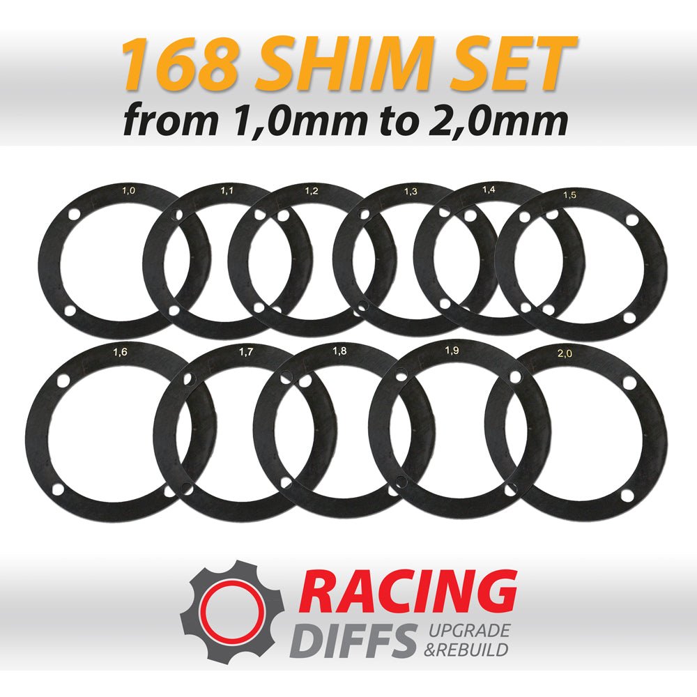 RacingDiffs Precision Shim Kit: Ultimate Backlash Adjustment for BMW Differentials When optimizing your BMW differential, especially when integrating an LSD or altering the gear ratio, precise backlash adjustment becomes paramount. The RacingDiffs Precision Shim Kit is tailored exclusively for this purpose, ensuring your BMW differential runs without a hitch. Broad Compatibility: Expertly designed to fit a wide range of BMW differentials including 168mm, 188mm, and 210mm. Compatible models comprise E21, E28, E30, E36, E34, E32, E31, and Z3. Precision-Centric: This kit comes packed with 10 top-tier shims, spanning from 1mm to 2mm, incremented by 0.1mm. The focus? Precision. By having a wider range, you can achieve the optimal backlash setting for your differential. Preventive Care: A proper backlash adjustment not only eliminates unwanted noises but more importantly, safeguards the crown gear against premature wear and potential damage. Industry Superiority: Unlike other offerings, RacingDiffs emphasizes unparalleled precision, ensuring your BMW differential is tuned to perfection. Every BMW enthusiast understands the importance of precise tuning. With RacingDiffs, you’re not just making adjustments—you’re upgrading to the pinnacle of precision. Ensure optimal performance and longevity for your differential with RacingDiffs' Precision Shim Kit. OEM part numbers: -168mm-3313906573133-13-9-065-73133 13 9 065 73133.13.9.065.731 3313906573233-13-9-065-73233 13 9 065 73233.13.9.065.732 3313906573333-13-9-065-73333 13 9 065 73333.13.9.065.733-----------------------188mm-3313906573433-13-9-065-73433 13 9 065 73433.13.9.065.734 3313906573533-13-9-065-73533 13 9 065 73533.13.9.065.735-----------------------210mm-3313906573633-13-9-065-73633 13 9 065 73633.13.9.065.736 3313906573733-13-9-065-73733 13 9 065 73733.13.9.065.737