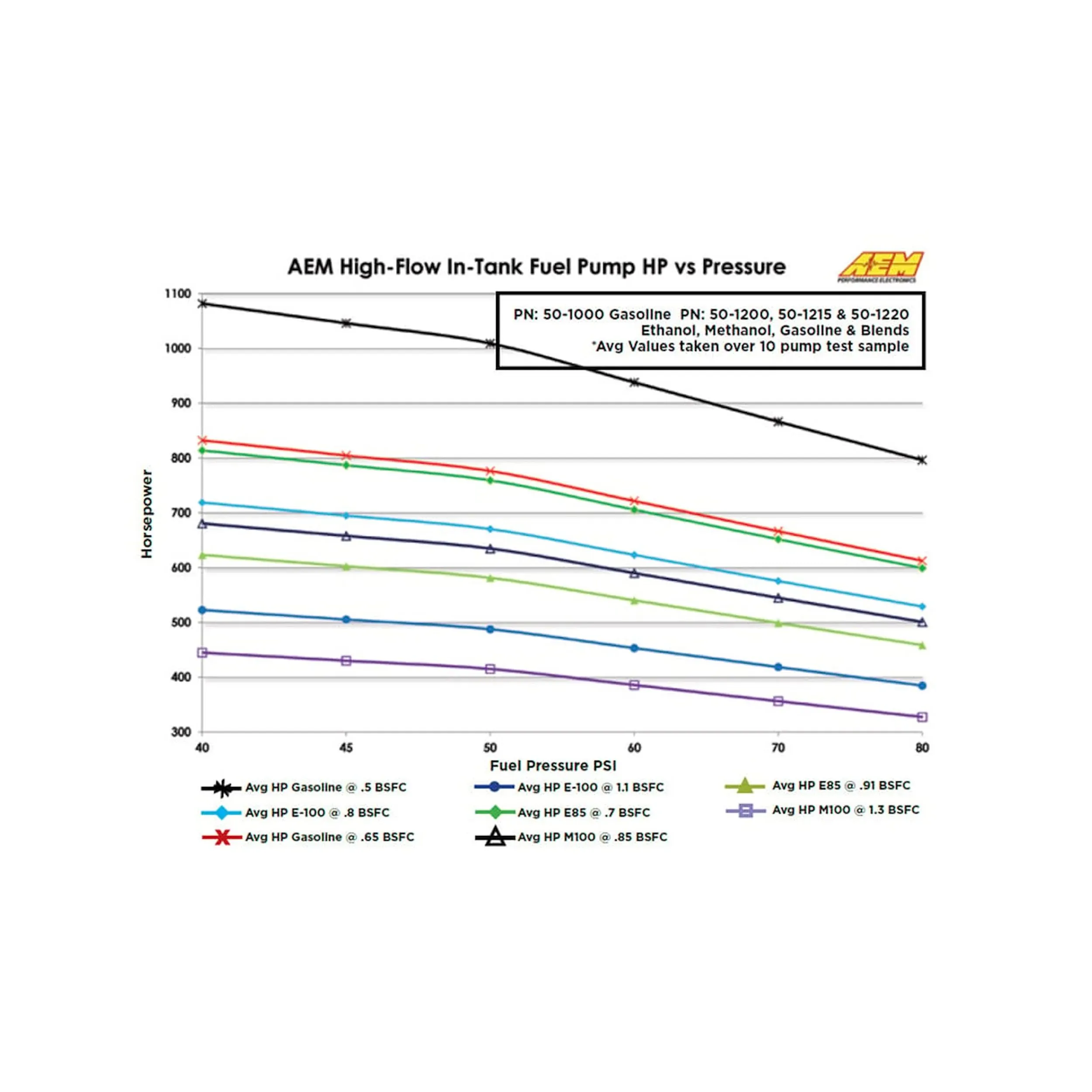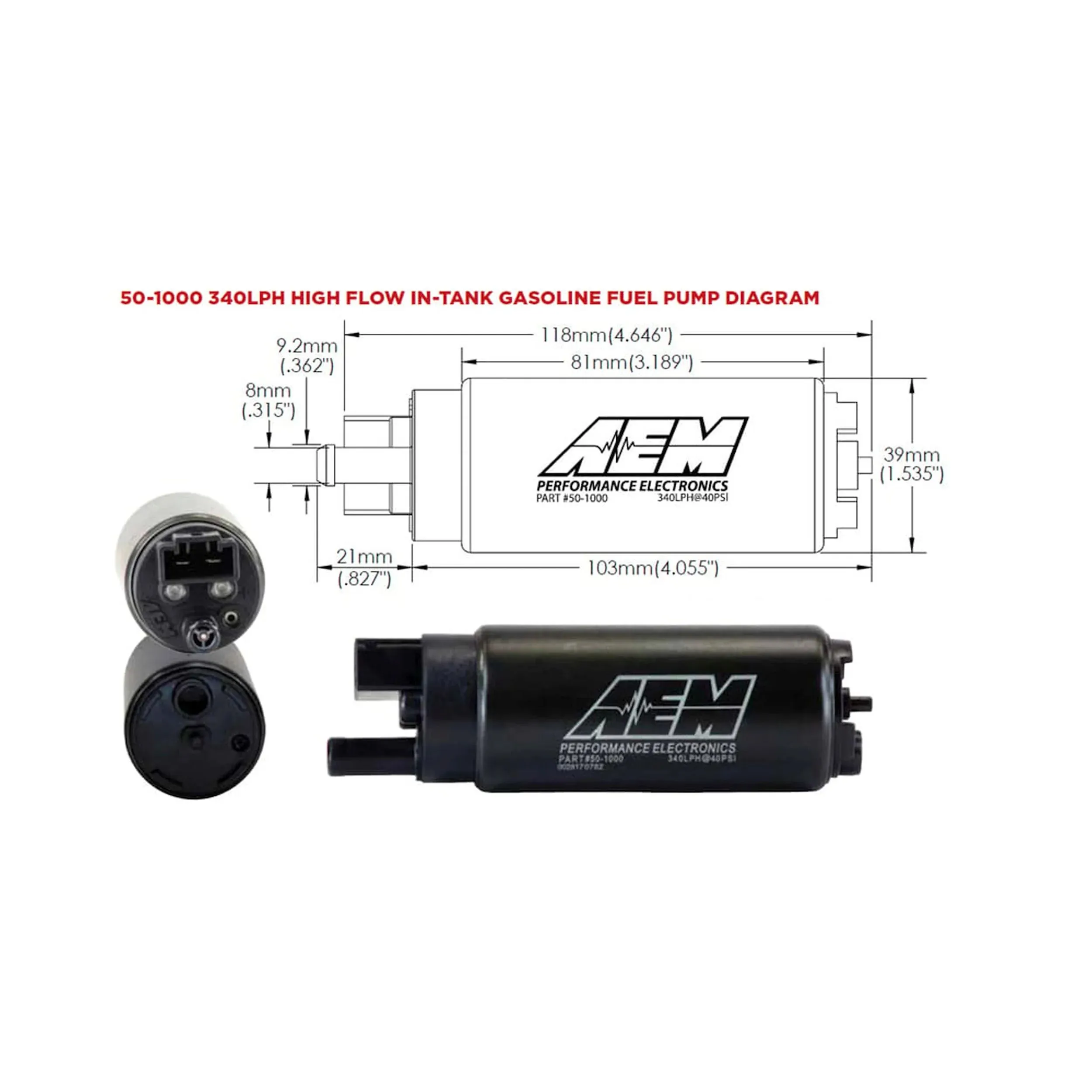 AEM 50-1000 Wysokoprzepływowa wewnętrzna pompa paliwa AEM 340LPH (przesunięty wlot). 340 lph przy 2.96 bara. Zestaw zawiera: pompę paliwa, instrukcje instalacji, wiązkę przewodów, filtr wstępny, wewnętrzny przewód paliwowy, zaciski, zaślepkę i gumową osłonę. Zestaw nie jest dedykowany, jest zestawem uniwersalnym. Wysokoprzepływowa pompa paliwa AEM 340LPH w zbiorniku została zaprojektowana dla pojazdów z silnikiem wolnossącym i z silnikami doładowanymi. Zapewnia niezawodne działanie i duży przepływ paliwa za mniej więcej połowę kosztów porównywalnych wydajnych pomp paliwowych. Wewnętrzna wysokowydajna pompa paliwa AEM 340LPH (PN 50-1000) o przepływie 340 lph (84 gph) przy 2.75 barach jest w stanie obsłużyć ponad 1000 KM przy 2.96 barach. Ta pompa paliwowa jest przeznaczona do montażu w zbiorniku do stosowania z benzyną i posiada kompaktową średnicę 39 mm, pasującą w większości przypadków. Ma odsunięty wlot, który ułatwia instalację Zestaw zawiera: przewody podłączeniowe, filtr wstępny, wewnętrzny przewód paliwowy i zaciski, kapturek końcowy i gumową osłonę. Przed zapakowaniem do sprzedaży każda pompa jest testowana na przepływ 340 l/h przy 2.75 barach (40 PSI). Zaprojektowane dla pojazdów o dużej mocy z silnikami wolnossących i z silnikami doładowanymi. Konstrukcja pompy wewnątrzzbiornikowa Testowany na przepływ 340 lph przy 2.76 barach Uniwersalna średnica - 39 mm Przesunięty wlot ułatwiający instalację Każda pompa testowana indywidualnie Dla pojazdów z silnikami benzynowymi Zestaw zawiera pompę paliwową, gumową osłone, korek końcowe, filtr wstępny, przewód, zaciski i przewód przyłączeniowy. SPECYFIKACJA TECHNICZNA: Waga: 354 gramy Średnica zewnętrzna: 39 mm Materiały zewnętrzne: stal powlekana na czarno z wytrawianiem laserowym średnica wlotu: 7.7mm (wew), 11.0mm (zewn). wlot przesunięty Dopasowanie wylotu: opaska zaciskowa na wąż 8 mm. wylot przesunięty Aktywacja PRV: 80 PSI Konstrukcja wirnika: jednowirnikowa turbina ceramiczna z pojedynczym ślimakiem SPECYFIKACJA PRĄDOWA: Zacisk przyłączeniowy: 6 mm Min. Wejście napięciowe: 6 voltów Maksymalne napięcie wejściowe: 18 Volt Pobór prądu (40 psi): 12 amperów (13,5v) Pobór prądu (80 psi): 15 amperów (13,5v) Bezpiecznik: 20 amperów (13,5v) Produkty AEM objęte są 12 - miesięcznym okresem gwarancji