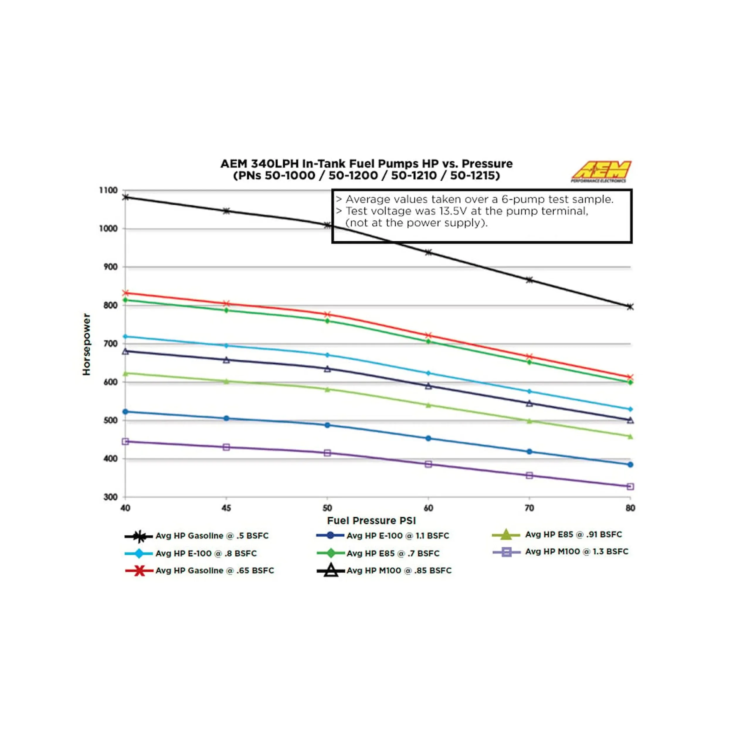 AEM 50-1215 AEM 340lph E85 wysokoprzepływowa pompa paliwową do zbiornika (65 mm krótki wlot offsetowy z hakami). 340lph@2.96 bar (43psi). Zestaw zawiera pompę paliwową, instrukcję montażu, przewody podłączeniowe, filtr wstępny i o-ringi. Pompa nie jest pompą dedykowaną. Wysokoprzepływowe wewnętrzne pompy paliwowe AEM 340LPH E85, charakteryzują się solidną wewnętrzną konstrukcją, która jest odporna na niskie właściwości smarne paliw etanolowych i metanolowych oraz są testowane pod kątem współpracy z paliwami etanolowymi do E100, metanolowymi do M100 i wszystkimi rodzajami benzyny. Kompaktowa, krótka konstrukcja korpusu (długość 65 mm) z hakami montażowymi sprawia, że jest on idealny do uniwersalnych zastosowań. Kompatybilna z AEM 340LPH E85 wysokoprzepływowa wewnątrzzbiornikowa pompa paliwowa jest przeznaczona do montażu w zbiorniku w wysokowydajnych pojazdach z silnikami wolnossącymi i z silnikami doładowanymi. Charakteryzuje się kompaktową średnicą 39 mm, która pasuje do większości zastosowań, oraz odsuniętą konstrukcją wlotu ułatwiającą instalację. Zestaw pompy 340LPH E85 zawiera przewody przyłączeniowe, filtr wstępny i o-ringi. Każda pompa paliwowa AEM 340LPH E85 jest przed zapakowaniem do sprzedaży testowana na przepływ 340 l/h przy 2.75 bar (40 PSI). Testowane i kompatybilne z paliwami etanolowymi do E100, paliwami metanolowymi do M100 i wszystkimi rodzajami benzyny Zaprojektowane dla pojazdów z silnikami wolnossącymi i z doładowaniem Konstrukcja wewnątrzzbiornikowa Każda pompa jest testowana na przepływ 340 l/h przy 2.75 bar (40 PSI) Kompaktowy korpus (średnica 39 mm x długość 65 mm) Zawiera pompę paliwową, instrukcję montażu, przewody podłączeniowe, filtr wstępny i o-ringi (zaleca się stosowanie standardowej osłony izolacyjnej). Produkty AEM objęte są 12 - miesięcznym okresem gwarancji