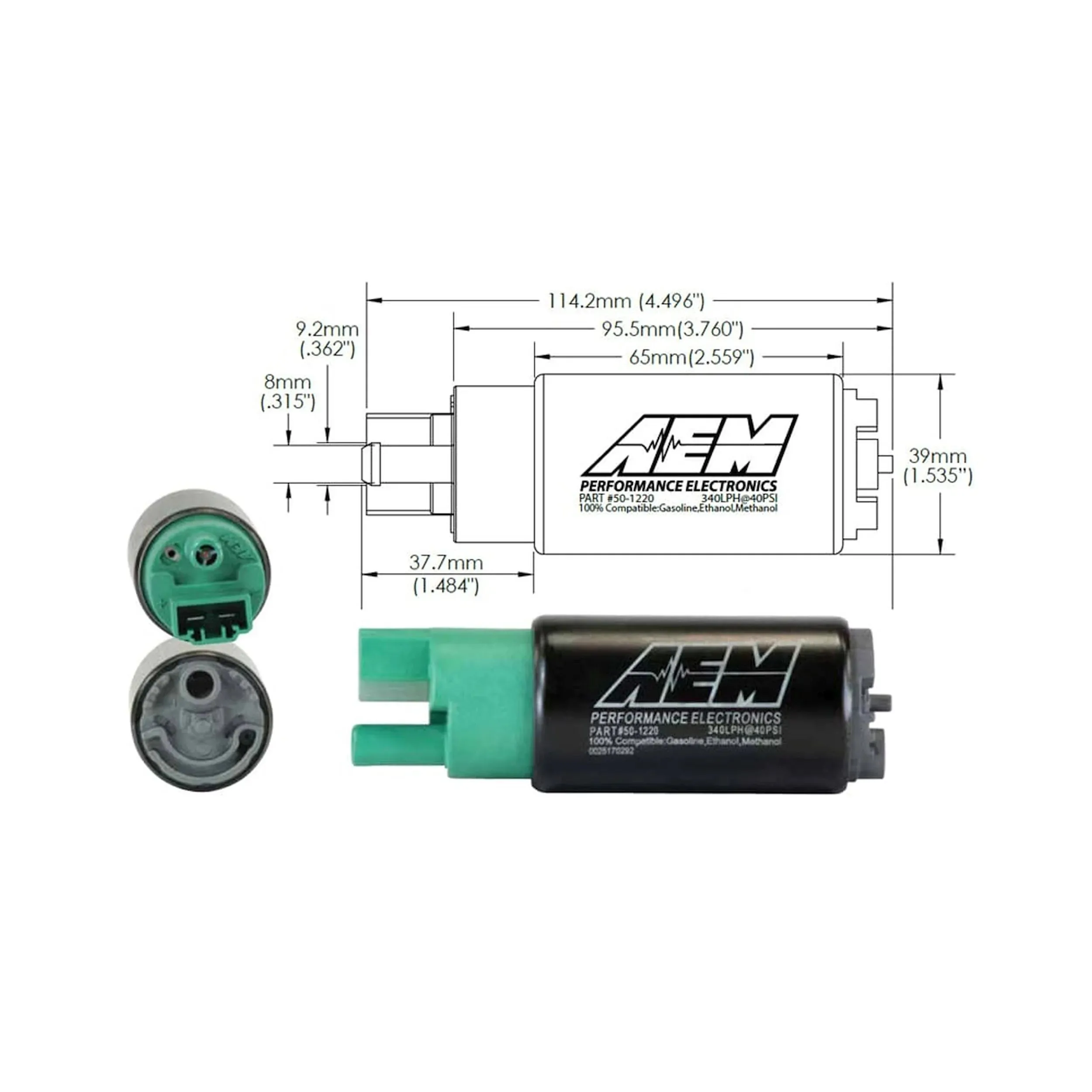 AEM 50-1220 AEM 340lph E85 wysokoprzepływowa pompa paliwową do zbiornika (65 mm krótki wlot offsetowy). 340lph@2.96 bar (43psi). Zawiera pompę paliwową, instrukcję montażu, przewody podłączeniowe, filtr wstępny i o-ringi. Pompa nie jest pompą dedykowaną. Wysokoprzepływowe wewnętrzne pompy paliwowe AEM 340LPH E85, charakteryzują się solidną wewnętrzną konstrukcją, która jest odporna na niskie właściwości smarne paliw etanolowych i metanolowych oraz są testowane pod kątem współpracy z paliwami etanolowymi do E100, metanolowymi do M100 i wszystkimi rodzajami benzyny. Kompaktowa, krótka konstrukcja korpusu (długość 65 mm) z hakami montażowymi sprawia, że jest on idealny do uniwersalnych zastosowań. Wysokoprzepływowa pompa paliwowa AEM 340LPH E85 jest przeznaczona do montażu w zbiorniku w wysokowydajnych pojazdach z silnikami wolnossącymi i doładowanymi. Charakteryzuje się kompaktową średnicą 39 mm, która pasuje do większości zastosowań, oraz odsuniętą konstrukcją wlotu ułatwiającą instalację. Zestaw pompy paliwowej 340LPH E85 zawiera przewody podłączeniowe, filtr wstępny i o-ringi. Każda pompa jest przed zapakowaniem do sprzedaży testowana na przepływ 340 l/h przy 2.76 bar (40 PSI). Testowane i kompatybilne z paliwami etanolowymi do E100, paliwami metanolowymi do M100 i wszystkimi rodzajami benzyny Zaprojektowane dla pojazdów z silnikami wolnossącymi i z doładowaniem Konstrukcja wewnątrzzbiornikowa Każda pompa jest testowana na przepływ 340 l/h przy 2.76 bar (40 PSI) Kompaktowy korpus (średnica 39 mm x długość 65 mm) Zestaw zawiera pompę paliwową, instrukcję montażu, przewody przyłączeniowe, filtr wstępny i o-ringi (zaleca się stosowanie fabrycznej osłony izolacyjnej). Produkty AEM objęte są 12 - miesięcznym okresem gwarancji