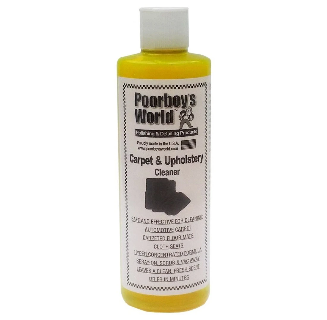 Poorboy’s World Carpet & Upholstery Cleaner to bezpieczny, nietoksyczny i wysoce skuteczny środek przeznaczony do usuwania zabrudzeń z różnego rodzaju tkanin. Doskonale sprawdza się w usuwaniu plam z dywaników samochodowych, wykładziny podłogowej, foteli oraz innych elementów z materiału. Jest na tyle mocny i skuteczny w usuwaniu trudnych plam, a jednocześnie wystarczająco delikatny, że można używać go tak często jak tylko zajdzie taka potrzeba. Mocne strony: Wysoce skoncentrowana formuła Spryskaj, wyczyść, odciągnij odkurzaczem Pozostawia świeży, czysty zapach Sposób użycia: Poorboy’s World Carpet & Upholstery Cleaner jest koncentratem, który przed użyciem należy rozcieńczyć. Wymieszaj 30 ml produktu w 1 litrze wody w butelce z atomizerem. Przed użyciem sprawdź działanie produktu w niewidocznym miejscu by upewnić się, że nie dojdzie do odbarwienia tkaniny. Spryskaj zabrudzoną powierzchnię i wyczyść szczoteczką do tapicerki materiałowej. Odciągnij pozostałości odkurzaczem piorącym i pozostaw do wyschnięcia. Wskazówka: Przed czyszczeniem lub praniem tapicerkę należy dokładnie odkurzyć. Występuje w pojemnościach: 473 ml, 946 ml, 3784 ml