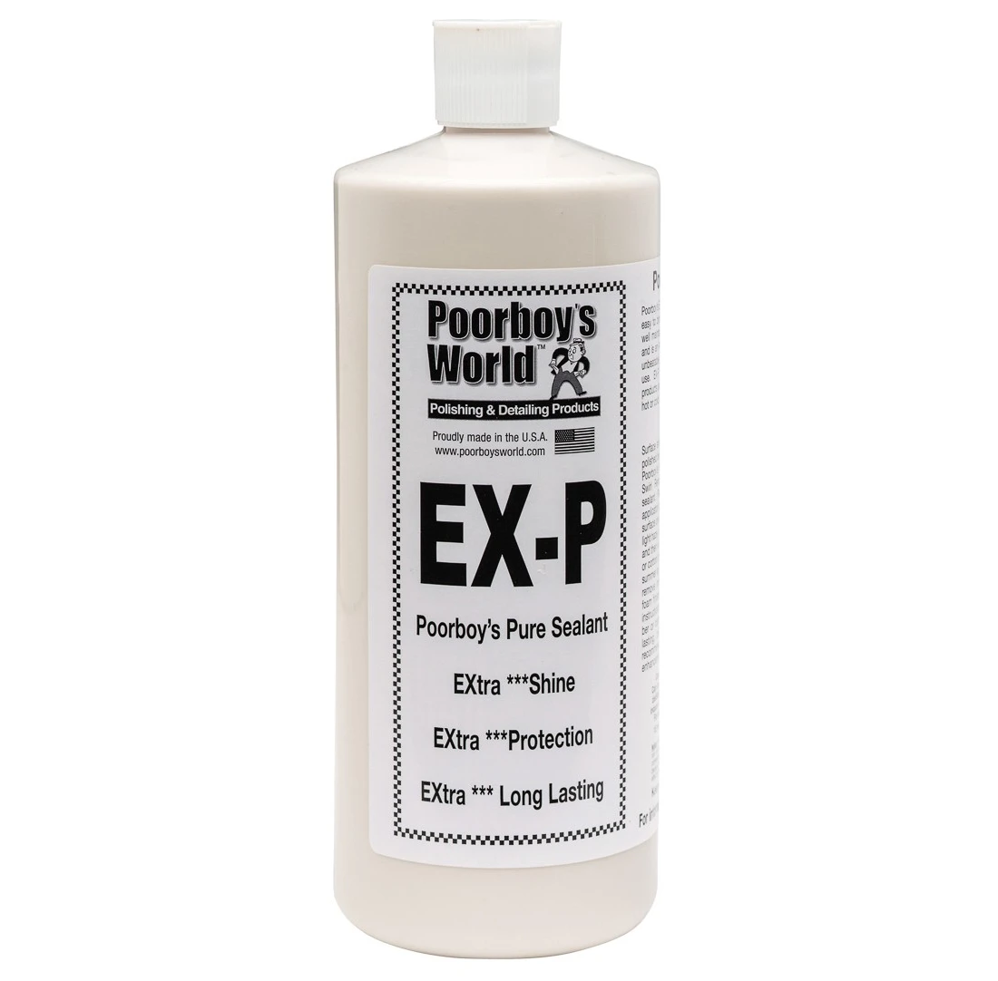 POORBOY’s EX-P Sealant to jeden z najlepszych wosków syntetycznych dostępnych na rynku profesjonalnych kosmetyków samochodowych. Bajecznie prosty w użyciu, pozwala nawet na aplikację w pełnym słońcu podczas gdy większość konkurencyjnych produktów wymaga cienia. Zapewnia wizualnie doskonałe wykończenie lakieru oraz 2-3 miesięczną ochronę po każdorazowym zastosowaniu. POORBOY’s EX-P Sealant szczególnie polecany jest do lakierów metalicznych i perłowych. Nadaje powierzchni lakieru niebywałej śliskości i pięknie uwydatnia płatki w metalikach. Sposób użycia: Poorboy’s EX-P Sealant może być aplikowany zarówno ręcznie jak i za pomocą polerki orbitalnej. Aplikacja ręczna: Aplikować na umytą i oczyszczoną powierzchnię lakieru za pomocą aplikatura z mikrofibry. 2-3 krople produktu wystarczają na jeden element nadwozia. Dla najlepszych efektów aplikować równomierną, cienką warstwę produktu i pozostawić do wyschnięcia. Po ok. 30 minutach spolerować delikatnie ręcznikiem z mikrofibry. Aplikacja maszynowa: : Aplikować na umytą i oczyszczoną powierzchnię lakieru za pomocą polerki orbitalnej i gąbki polerskiej wykończeniowej. Dwie krople o wielkości ziarna fasoli wystarczają na jeden element nadwozia. Polerować z prędkością 3000-4000 oscylacji na minutę, aż do pozostawienia na lakierze cienkiej warstwy produktu. Zostawić do wyschnięcia i po ok. 30 minutach spolerować delikatnie ręcznikiem z mikrofibry. Dostępne pojemności: 473 ml, 946 ml