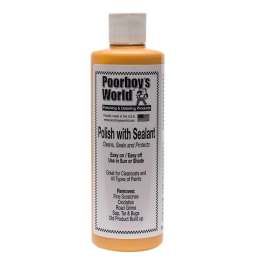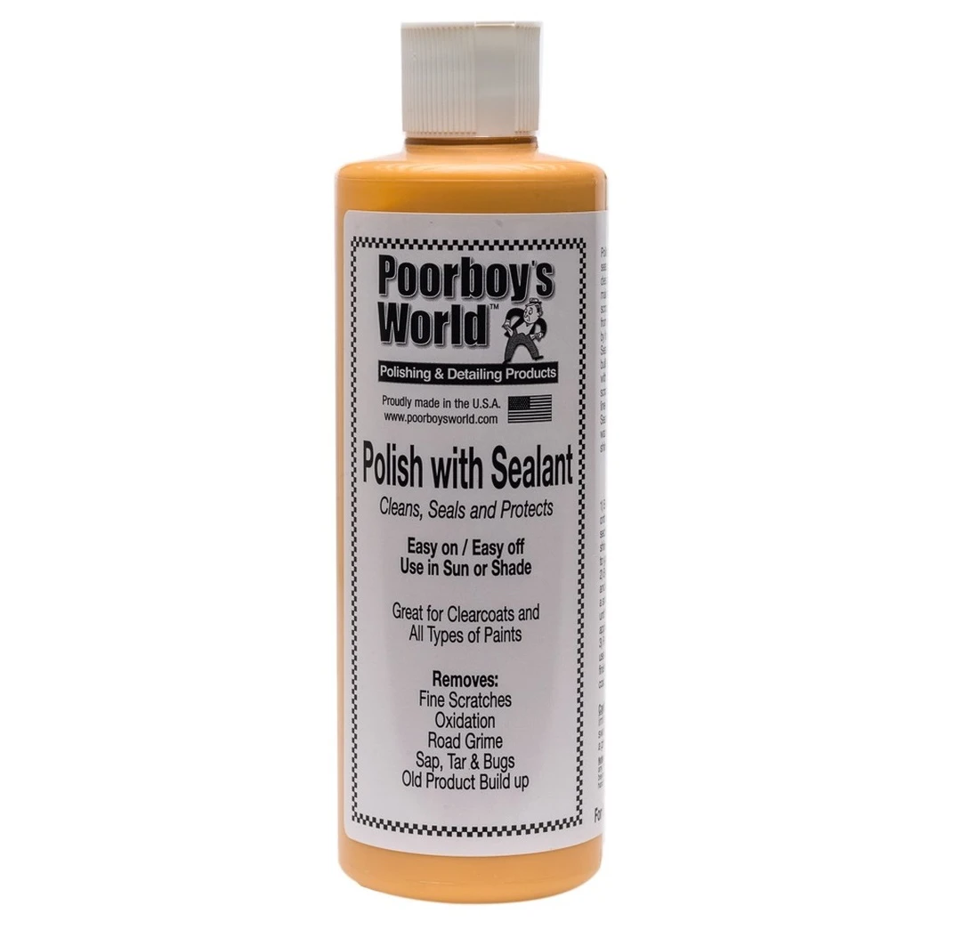 POORBOY’S Polish with Sealant to produkt typu AIO( All In One) . Za pomocą jednej łatwej aplikacji oczyszcza lakier oraz zabezpiecza go. Nie zawiera ścierniwa, oczyszcza skutecznie lakier bazując na chemicznych właściwościach czyszczących. Dzięki zawartości syntetycznych polimerów zapewnia ochronę oraz głębię koloru i połysk. Idealny wybór dla osób nie mogących poświęcić dużej ilości czasu na przeprowadzenie złożonego procesu pielęgnacji lakieru kilkoma różnymi środkami. Krótko zwięźle i na temat, za jednym zamachem zapewnia doskonałą prezencję samochodu. Sposób użycia: Aplikacja ręczna – nakładaj kolistymi ruchami za pomocą aplikatora z mikrofibry starając się dobrze wypracować produkt. Następnie wypoleruj do uzyskania połysku ręcznikiem z mikrofibry. Aplikacja maszynowa – nakładaj za pomocą polerki orbitalnej i miękkiej gąbki polerskiej z prędkością 3000-4000 oscylacji na minutę aż do uzyskania cienkiej powłoki. Następnie wypoleruj do uzyskania połysku ręcznikiem z mikrofibry. Dostępne pojemności: 473 ml