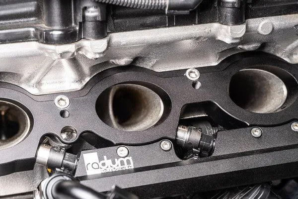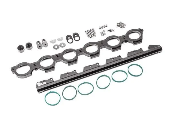 The Radium Engineering Port Injection Kit (PIK) installs between the intake manifold and the cylinder head. It permits the use of port injectors for the additional fuel required for highly-modified B58TU engines. This does NOT replace the OEM direct injection system.
