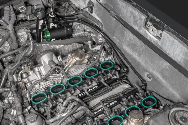 These components mount to the LH side of the engine using OEM threaded bosses on the frame rail. No drilling or permanent modifications are required.