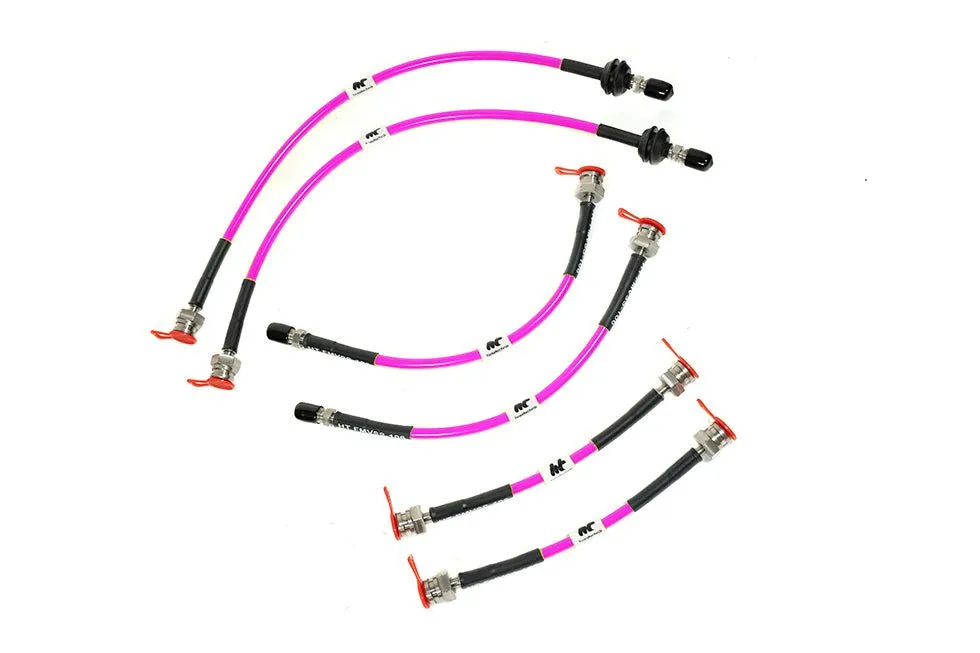 Mazda 323 1.8 1998-2001 fioletowe przezroczyste przewody hamulcowe HEL teflonowe w stalowym oplocie
