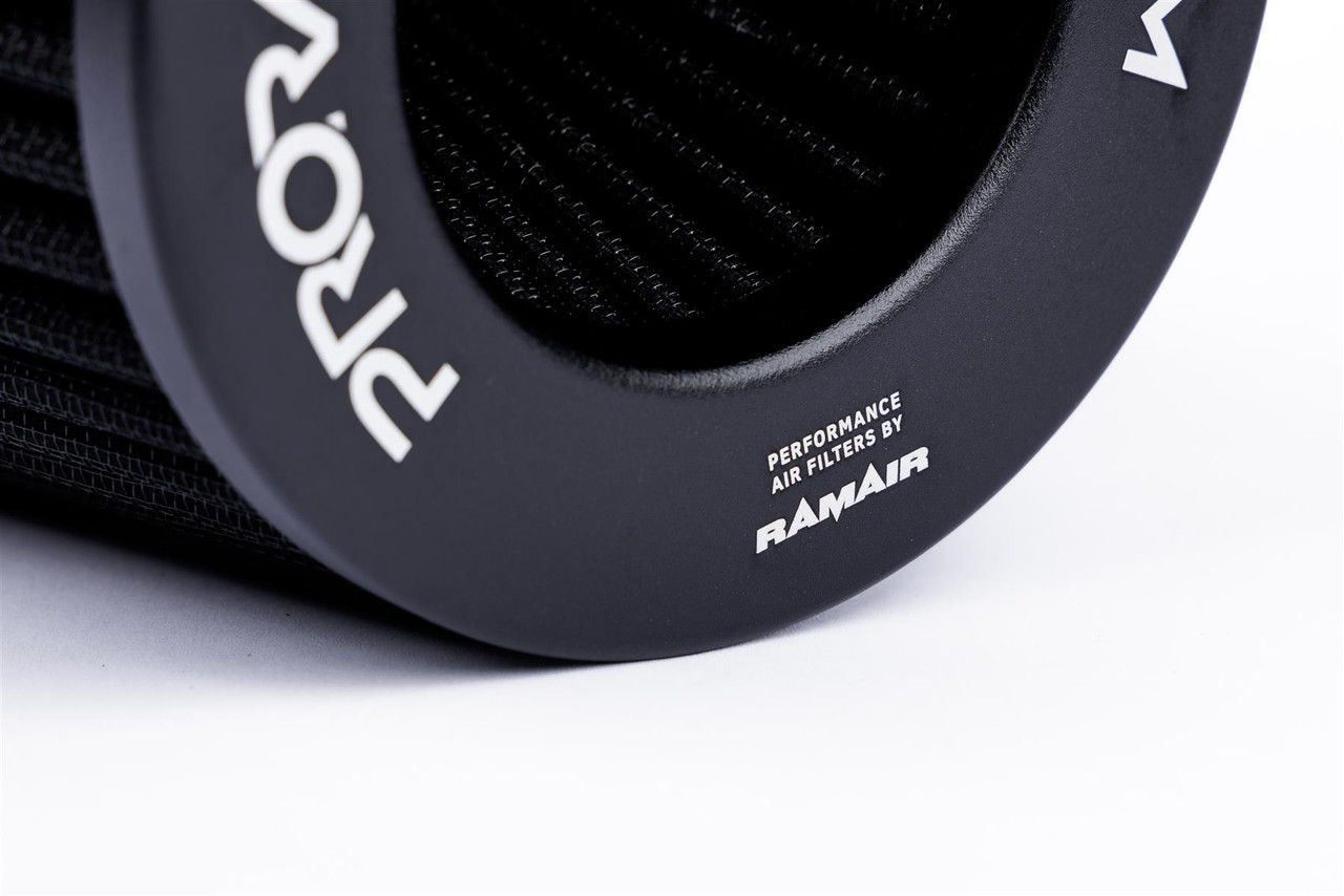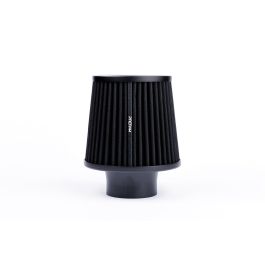This filter is designed to be inserted into a flexible hose such as a rubber or silicone intake pipe. These filters have an aluminium ram-pipe neck and a cone shaped filter element. This integral cone channels all the incoming air, towards the inlet manifold, and in doing so, reduces unnecessary turbulence. These filters are also cone shaped because it enables easy fitting to space restricted engine compartments and with the extremely large amount of pleated surface area an added boost of power to your engine too! These filters are made using a high quality, high flow, synthetic nanofiber filtration media which is pleated to maximise surface area and in turn increase air flow. Utilising over 35 years of experience in the field of motorsport filtration the pleated range by Ramair is the premium choice on the market today for your fast road or track car. With its large size, technologically advanced filter and bell mouth alloy spun base this filter kit is capable of handling extremely large power & flow rates. Filter Outer Neck Diameter: 89mm (3.5inch) Filter Neck Length: 45mm (1.8inch) Filter Overall Length: 185mm (7.3inch) Filter Base Width: 150mm (5.9inch) Filter Top Width: 120mm (4.7inch) Filter Material: Pleated Nanofibre Filter Base Material: Filter Base Finish: Black Powder Coat