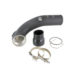 Przewód Charge Pipe FMIC.EU BMW N55 F10 F12 F07 535i 640i 2011-2017 Średnica wewnętrzna przewodów jest powiększona w porównaniu do oryginalnej rury dolotowej. Dzięki czemu ograniczenie przepływu powietrza jest zminimalizowane. Wadliwy fabryczny element tworzy turbulencje powietrza i powoduje zmniejszenie przepływu i wydajności. Wykonany z tworzywa sztucznego ulega uszkodzeniu na flanszy mocującej lub pęka, został zastąpiony rurami aluminiowymi co gwarantuje szczelność. Elementy łączy redukcja silikonowa z poczwórnym zbrojeniem o grubości ścianki 5mm. Zawiera wejścia/ zatyczki 1/8" NPT do wtrysku metanolu albo podłączenia czujnika temperatury dolotu. -Przewód z aluminium 6061, zamiennik przewodu OEM. -Łączniki aluminiowe zastępują wadliwą rurę plastikową, która może ulec uszkodzeniu. pod wpływem zwiększonego ciśnienia doładowania. -Powiększona średnica i gładki przepływ bez zwężeń pomaga zmniejszyć turbulencje i zmaksymalizować przepływ powietrza. -Wszystkie króćce przyłączeniowe obrabiane CNC. Skład zestawu: Aluminiowy łącznik pomalowany proszkowo na czarno: -76mm: 2x wejście/zatyczka 1/8 npt, wejście MAF sensor -Redukcja silikonowa 63/76mm -Obejmy nierdzewne 4 szt -Uszczelka, C-clip Dla samochodów z silnikami: N55 Dedykowany do: -F07 BMW 535i & 535iX GT 2011 – 2017 -F10/F11 BMW 535i & 535xi 2011 – 2017 -F12/F13 BMW 640i & 640xi 2011 – 2017 -F01/F02 BMW 740i, 740Li & 740iX 2011 – 2017 -E70 BMW X5 35i & 35iX 2010 – 2012 -F15 BMW X5 35i & 35iX 2013 – 2018