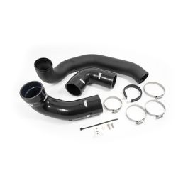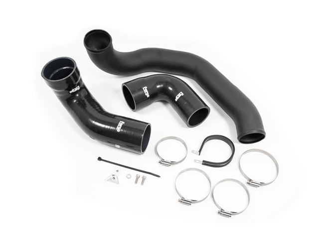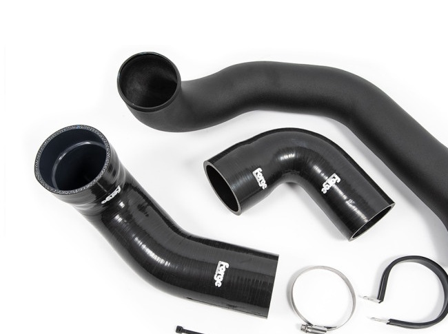 FMDP1 to bezpośredni zestaw zamienny Forge Motorsport, opracowany jako rozwiązanie dla zbyt małego seryjnego przewodu wylotowego (discharge hose) w silniku 2.0T EVO 4. Produkt został zaprojektowany jako uzupełnienie sportowego intercoolera Forge FMINT24, zapewniając znaczną poprawę przepływu powietrza w układzie doładowania. Przewód Forge Motorsport posiada wylot o średnicy 76 mm, idealnie dopasowany do wejścia intercoolera FMINT24. Zastępuje restrykcyjny plastikowy element OEM, zwiększając objętość oraz wydajność przepływu powietrza. Dążenie do wyższej mocy oznacza większe doładowanie, dlatego eliminacja zwężeń w układzie boost ma kluczowe znaczenie. Analiza seryjnego rozwiązania wykazała potencjał poprawy zarówno w sztywnej części przewodu, jak i w gumowych połączeniach OEM. Dzięki zastosowaniu technologii skanowania 3D oraz projektowania CAD powstał produkt o najwyższej precyzji wykonania. Po wielu miesiącach testów wybrano konstrukcję w postaci sztywnej, profilowanej rury aluminiowej, której średnica wewnętrzna została zwiększona z 63 mm do 76 mm (wzrost powierzchni przekroju o około 21%) na odcinku od turbosprężarki do połączenia z gorącą stroną intercoolera. Nowe przewody w zestawie DP1 wykonano z 4-warstwowego silikonu z powłoką fluorowęglową, a całość stabilizowana jest specjalnie zaprojektowanym uchwytem, który zapewnia idealne pozycjonowanie po montażu. Zestaw umożliwia pracę przy wyższych poziomach doładowania, poprawia efektywność przepływu powietrza oraz oferuje znacznie większą trwałość niż element OEM, podatny na zmęczenie materiału. Produkt objęty jest legendarną, ograniczoną dożywotnią gwarancją Forge Motorsport. Przy zastosowaniu wraz z intercoolerem FMINT24 można oczekiwać przyrostu 6–7 KM oraz około 10 Nm momentu obrotowego (w zależności od modyfikacji i oprogramowania pojazdu). Czarne, teksturowane wykończenie proszkowe oraz czarne przewody silikonowe zapewniają dyskretny, zbliżony do OEM wygląd komory silnika. FMDP1 stanowi bezpośredni zamiennik części OEM 5WA 145 840D i jak wszystkie produkty Forge dostarczany jest z szczegółową instrukcją montażu. Zastosowanie: Audi S3 2.0 TSI (8Y) Audi S3 Sportback 2.0 TSI (8Y) Audi TTS Mk3 8S 316 KM (2022) Cupra Formentor 2.0 TSI 245 KM / 310 KM Cupra Leon VZ1, VZ2, VZ3 Volkswagen Golf Mk8 Clubsport 45 Volkswagen Golf Mk8 GTI Volkswagen Golf Mk8 R Volkswagen Tiguan R (2022)