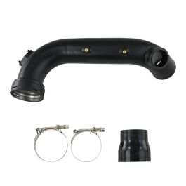 Przewód dolotowy Charge Pipe FMIC.EU BMW N/54 135i 335i 2006-10 BOV Średnica wewnętrzna przewodów jest powiększona w porównaniu do oryginalnej rury dolotowej. Dzięki czemu ograniczenie przepływu powietrza jest zminimalizowane. Wadliwy fabryczny element tworzy turbulencje powietrza i powoduje zmniejszenie przepływu i wydajności. Wykonany z tworzywa sztucznego ulega uszkodzeniu na flanszy mocującej lub pęka, został zastąpiony rurami aluminiowymi co gwarantuje szczelność. Elementy łączy redukcja silikonowa z poczwórnym zbrojeniem o grubości ścianki 5mm. Zawiera korki 1/8" NPT do wtrysku metanolu/ wody albo do podłączenia czujnika temperatury dolotu. - Przewód z aluminium 6061, zamiennik przewodu OEM. - Łączniki aluminiowe zastępują wadliwą rurę plastikową, która może ulec uszkodzeniu. pod wpływem zwiększonego ciśnienia doładowania. - Powiększona średnica i gładki przepływ bez zwężeń pomaga zmniejszyć turbulencje i zmaksymalizować przepływ powietrza. - Wszystkie króćce przyłączeniowe obrabiane CNC. Skład zestawu: -Aluminiowy łącznik pomalowany proszkowo na czarno: 89mm, wejścia/zatyczki 1/8 npt, wejście BOV 50mm, wejście MAF sensor -Redukcja silikonowa 80/ 90mm -Obejmy nierdzewne 2szt. Pasuje do: -BMW 135i e82, e88 2007-10 -BMW 1 M coupe 2011-13 -BMW 335i/Xi e90, e92 2006-10 -BMW 335is e93, e92 2011-13