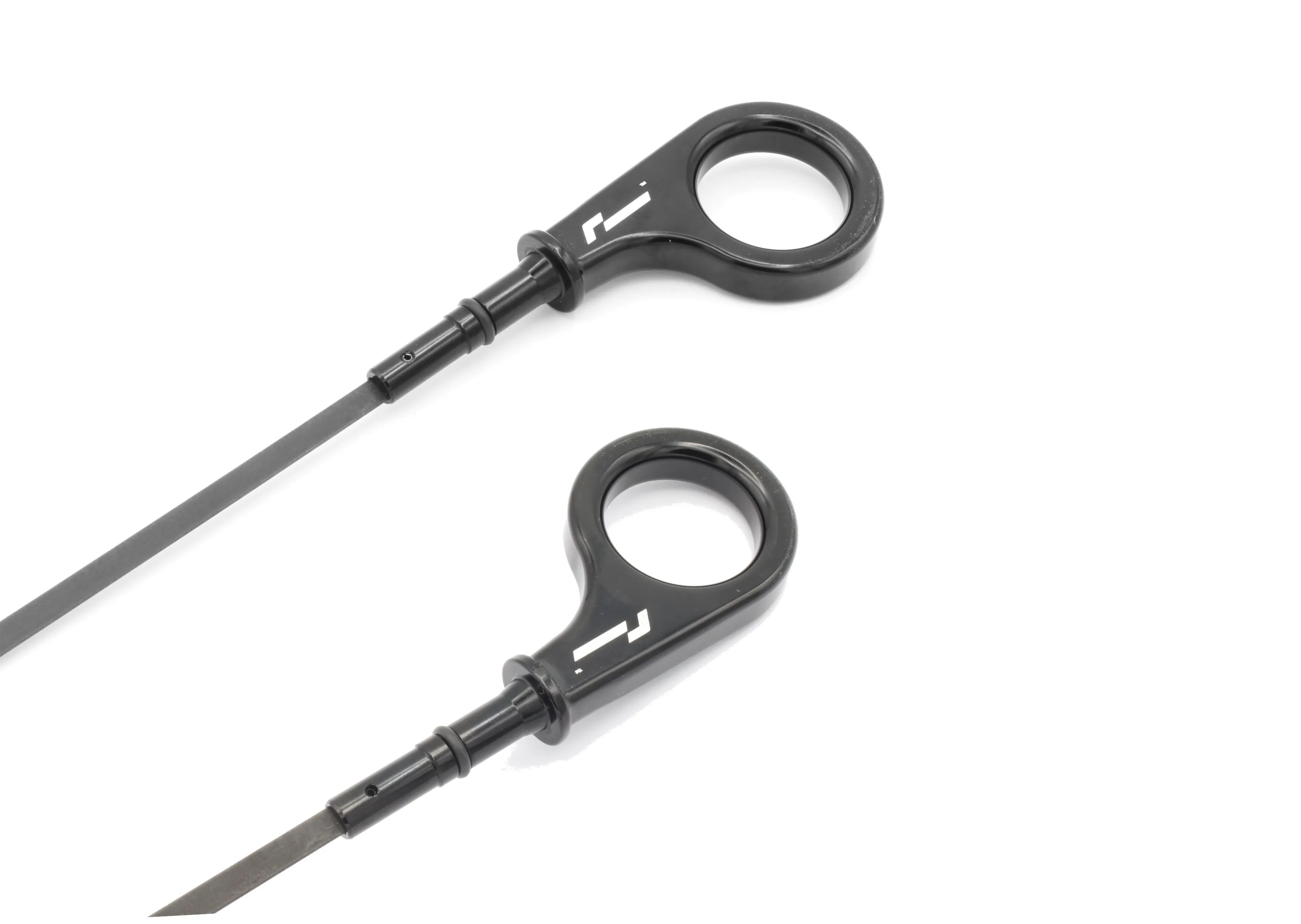 The RacingLine Billet Dipstick for all VWG 1.0 TSI & 1.4 TSI (EA211) engines (including the 1.4 Hybrid GTE/PHEV) replaces the cheap plastic original, giving not just a beautiful appearance in the engine bay, but also a vastly stronger high-quality replacement. Checking your oil level has never been so pleasing! The design of the RacingLine Billet Dipstick is all about the beautiful details. The handle itself is meticulously CNC-machined before being hand-polished, then gloss-anodised in Midnight Black to stay beautiful year after year. A high-quality viton rubber o-ring will prevent the risk of any oil leakage. The factory plastic dipsticks are notorious for the handle snapping off as you try to pull it out. With the temperature cycles from extreme heat to cold, it's no wonder that the plastic handle eventually goes brittle and fails. The RacingLine Billet Dipstick will make sure that this never happens to your car. A great upgrade for any 1.0 TSI or 1.4 TSI car!