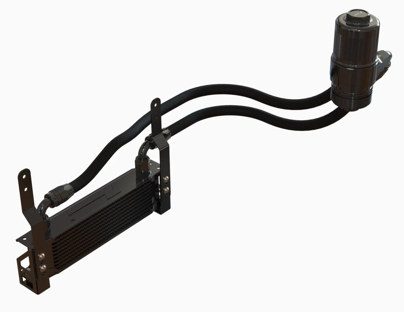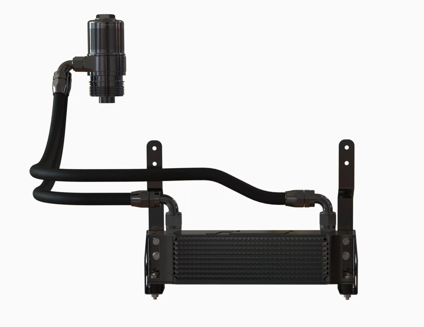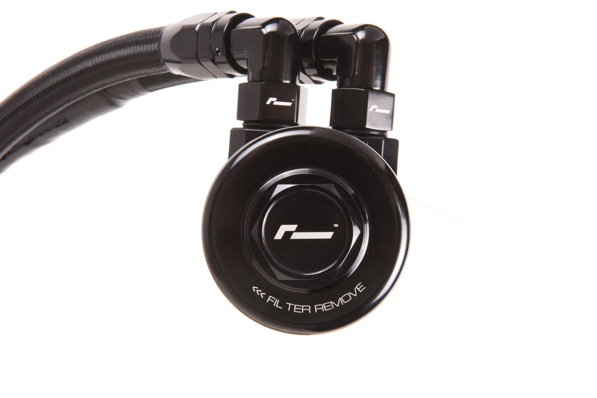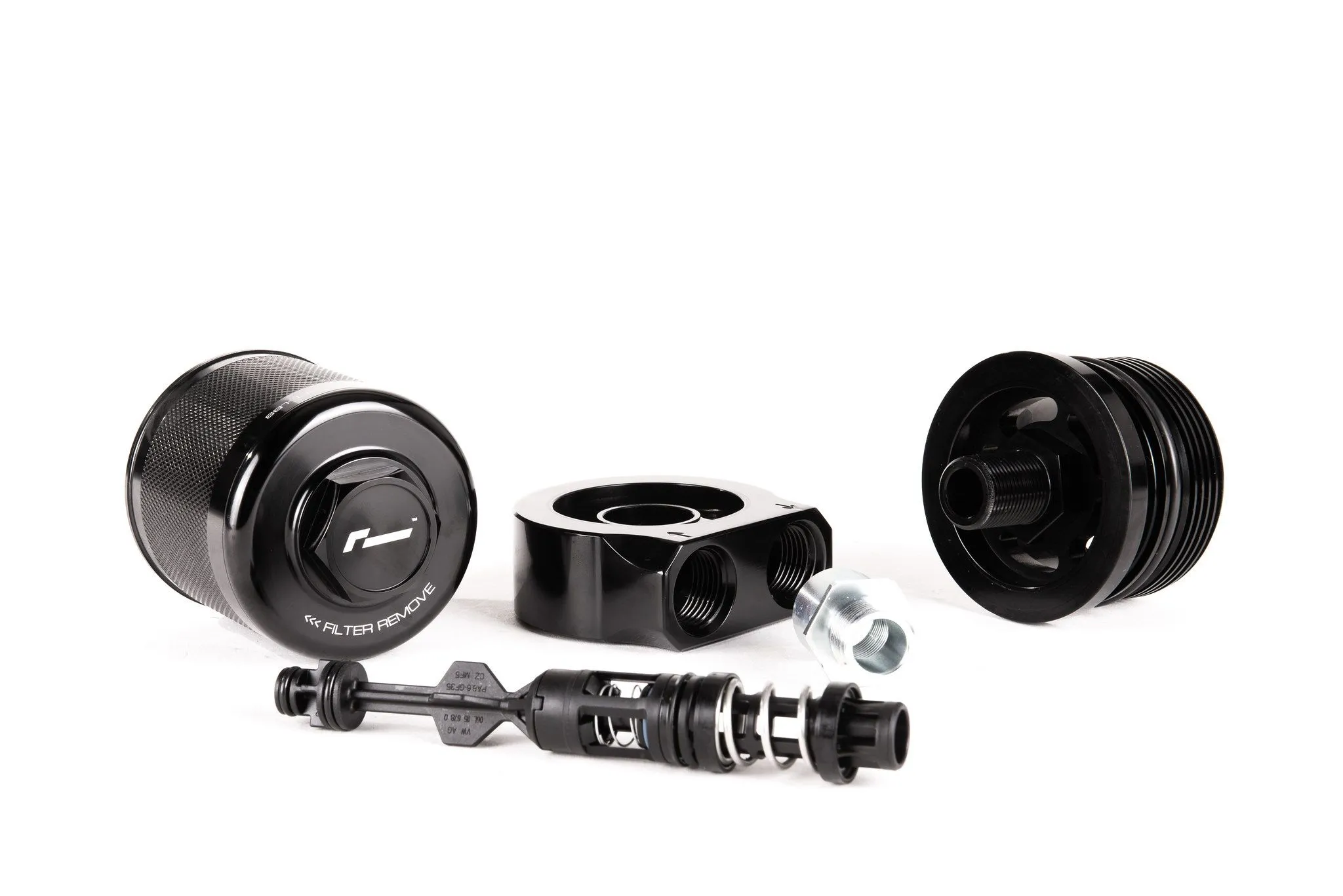 RacingLine’s Oil Cooler Kit is an essential fit for any hard-driven MQB car with the 2.0 or 1.8 TSI EA888.3 engine running high power levels or in extreme climates. Increased oil temperatures means only one thing: a decrease in the ability for your engine to stay properly lubricated - this beautiful oil cooler kit will help protect it. The higher your power, the harder you drive, the more important it is to protect your oil. That's why you should insist on RacingLine’s Oil Cooler Kit. Adding power to 2.0 TSI EA888.3 engines generates more heat to disperse. Significantly increased oil temperatures means only one thing: a decrease in the ability for your engine to stay properly lubricated. Under hard driving, the stock oil cooler is easily overwhelmed. Failures start to occur when oil cannot dissipate its collected heat fast enough and the oil begins to thin and degrade - losing its lubrication properties. The RacingLine kit solves this problem: by adding in an additional air to oil cooler positioned right in the airflow in the front of the car, oil temperatures are reduced by around 60° - 70° degrees fahrenheit (of course dependant on how the car is being used, ambient temps and state of tune). Unlike others, RacingLine’s kit retains the oil to water cooler that your car came from the factory with, then adds to it with this front-mounted cooler - which has the twin benefits of doubling up your oil cooling capability with less heat transfer from hot oil into the car's water system. As the oil moves away from the heat inside the engine, its temperature drops significantly as it is pumped through the densely packed fins of the 10-row cooler’s large surface area mounted right in the cool airflow. Yet at the same time, it's really important not to over-cool the oil. RacingLine’s extensive track development on this kit concluded that a 10 row stacked-plate cooler provides the ideal level of cooling ability. Whilst bigger coolers were tested, these were found to be too effective when used in conjunction with the factory cooler – dropping oil temperatures lower than the optimum for a good synthetic oil to give best engine performance. Never forget that cold oil is certainly not desirable! One of the smartest aspects of this kit is the unique sandwich plate oil take-off which includes a clever internal pressure-control valve control to direct oil flow through the cooler at correct flow/volume. This sandwich plate includes an integral pressure relief valving system to protect the system from pressure spikes. The whole system is designed with straightforward fitting and ultimate reliability in mind. Everything single part needed for perfect fitment is included in the kit. Unlike other oil cooler kits, with the RacingLine kit there is no need to remove the intake manifold to access oil galleries for a feed in and out of the engine. Instead, the clever oil filter adapter enables the oil cooler sandwich plate to be installed underneath the current oil filter housing on all EA888.3 engines - just screw off and replace. The kit includes a replacement oil filter that sits in the beautiful new billet housing. Made from a medical-grade stainless steel micronic filter cloth with magnetic pre-filtering, it’s capable of flowing 5x more oil than the factory paper filter. This filter is available to purchase separately for servicing. Whilst it is a lifetime filter, RacingLine recommend changing the filter with each oil change to ensure all contamination and ferrous particles are fully removed. As you’d expect from a RacingLine kit, it comes with beautiful, precision machined billet components utilising the latest 5 Axis CNC machines for perfect accuracy, first time, every time. All the metal parts are hand polished, then anodized in a long-lasting glossy Midnight Black finish. Laser etched logos finish off the appearance perfectly. The oil lines feature an attractive outer nylon braid strengthened by a stainless-steel inner weave for maximum resilience. A protective external sheath avoids any rubbing damage in use. The front-mount location brackets of the oil cooler radiator locate it securely in the optimum airflow and ensures that oil temperature drops and excess heat is funnelled out efficiently.