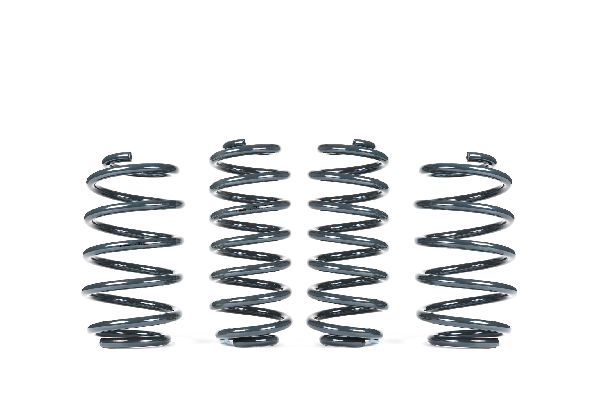 RacingLine’s VWR Sport Springs są na całym świecie najlepiej sprzedającym się produktem. Mało zaskakujące, biorąc pod uwagę rozległą pracę testową i rozwojową, którą RacingLine inwestuje w każdy model, Twój Scirocco lub Beetle 2012+ nadal będzie pięknie prowadził, ale z wyraźnie bardziej dynamicznym charakterem, a także oczywiście idealną wysokością zawieszenia. Innymi słowy, taki sam, jaki powinien był być z fabryki. Jeśli codziennie używasz swojego Scirocco lub Beetle 2012+ i szukasz ulepszenia zawieszenia, nie znajdziesz lepszego rozwiązania niż Sport Springs RacingLine’a. Zamieniają one cztery standardowe sprężyny samochodu na przerobione, progresywno-nierówne i nieco krótsze Sport Springs. Sprężyny obniżają te modele o 20-25 mm, aby zachować wymaganą ruchomość kół dla idealnej jazdy i prowadzenia. Jeśli obniżysz lub zwiększysz sztywność w sposób różny od Sport Springs RacingLine’a, Twój samochód będzie się najprawdopodobniej odbijał i stukał, gdyż amortyzatory będą nieprawidłowo dobrane do sztywności sprężyny, a same sprężyny wyczerpią swój skok. W efekcie centrówka pojazdu jest obniżona, co redukuje przechyły nadwozia dla lepszych właściwości dynamicznych, zachowując jednocześnie jakość jazdy i komfort Twojego samochodu. Tymczasem wygląd samochodu subtelnie ulega zmianie. Pozbywając się tych okropnych luk nad kołami, zacznie wyglądać tak, jak zawsze powinien z fabryki! Wiele ekspertów uważa rozwój zawieszenia za równie dużo sztukę, co nauką. W rzeczywistości jest to trochę jedno, trochę drugie. Obszerny program rozwojowy RacingLine’a określa sprężyny progresywne, aby zachować jakość jazdy podczas normalnego użytkowania, ale następnie zwiększyć sztywność na końcach skoku. Ta konstrukcja sprężyny o progresywnej sztywności oznacza, że sztywność sprężyny w środku skoku jest bardzo podobna do standardowej. Dopiero pod koniec skoku sprężyny (czyli podczas ostrego hamowania lub skręcania) RacingLine zaprojektował, aby sprężyna zwiększyła sztywność. To właśnie progresywna konstrukcja sprężyny jest tajemnicą takiej dobrej jakości jazdy połączonej z dynamicznymi osiągami. Sport Springs są opracowane tak, aby były w pełni kompatybilne z samochodami wyposażonymi w przełączalne amortyzatory DCC (regulowane sterowanie zawieszeniem) Volkswagen Group. Sprężyny Sport Springs RacingLine’a są wysokiej jakości, produkowane w Europie, w tej samej fabryce, która produkuje wiele standardowych sprężyn OEM. To pierwsza modernizacja, którą należy zrobić w swoim samochodzie; daj mu wysokość jazdy, której zasługuje!