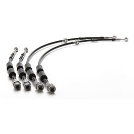 RacingLine’s pair of two Rear Uprated Brake Lines for MQB cars with electric park brake (not manual handbrake). Developed and proven on their racecars, these replacement lines are a direct fit and when used in conjunction with their Uprated Front Lines will keep your brake pedal firm, stop after stop. These direct-replacement RacingLine Uprated Rear Brake Lines for MQB & MQB ‘EVO’ cars help to avoid that spongy pedal under demanding conditions as heat build-up grows, giving greater braking efficiency as well as providing superior resistance to any damage or corrosion. A simple direct replacement for the factory rear rubber hoses, and come supplied complete with nylon locaters to ensure the hose can be secured in the same position as OEM hoses. Simply remove the factory rubber pipes and resinstall these uprated lines. Bleed the system and you're good to go. Manufactured in the UK from PTFE lined, stainless steel reinforced hose, the fittings on the end of each hose manufactured from 303 Stainless Steel. With excellent temperature resistance characteristics, these have a high level of dimensional stability (reducing expansion and creep even after prolonged stress at elevated temperatures). There's no more demanding challenge for lines than motorsport - and RacingLine’s Brake Lines are proven time after time on their own cars on-circuit; even with the high temperatures that race fluids operate at. Temperature Limits range from -73°C (-100°F) right up to +260°C (+500°F). Working Pressure Ratings: -3 = 350 Bar (5000 psi) to -16 = 80 Bar (1150 psi). This kit comprises two direct-replacement REAR brake lines, made to the exact correct lengths for Golf 7 and MQB/MQB EVO vehicles - please note, the rears are not applicable for models with cable handbrake - electronic parking brake only. Please note, RacingLine also offers a full kit of four front and rear Uprated Brake Lines. These Front Uprated Brake Lines make one of the most cost-effective upgrades you can make to your car, whether running standard brakes or uprated, and are the perfect compliment to RacingLine’s RBF312 Brake Fluid.
