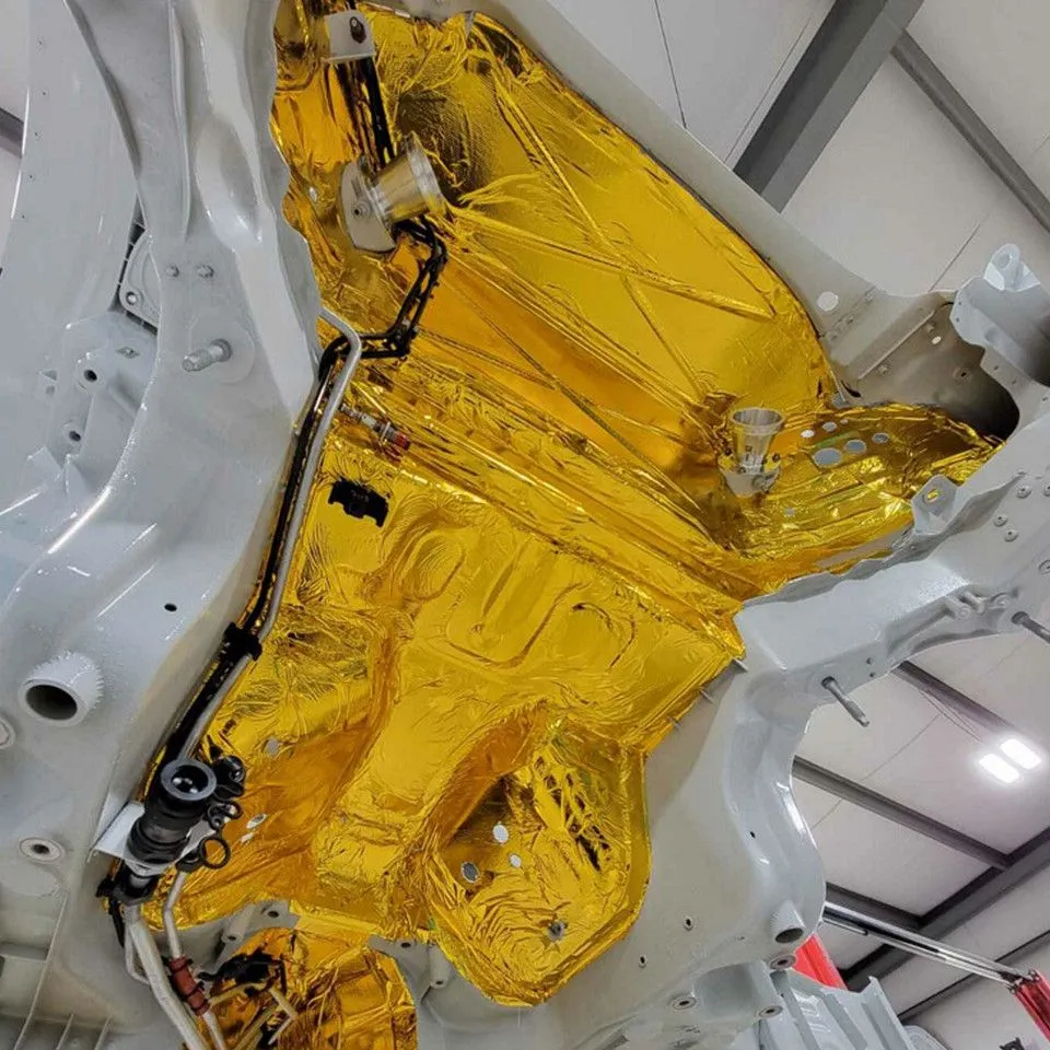 Reflect-A-GOLD™ rozwiązuje problem przegrzewania elementów takich jak air boxy, siedzenia, grodzie, tunele skrzyni biegów i doloty. Reflect-A-GOLD to samoprzylepna osłona termiczna wykonana z metalizowanego poliimidu laminowanego z lekką tkaniną z włókna szklanego, z wysokotemperaturowym, wrażliwym na nacisk klejem do pracy w środowiskach z dużymi wahaniami temperatury. Nasza lekka, samoprzylepna osłona termiczna łatwo się aplikuje i nie odkleja się. Niewielka grubość i łatwość montażu sprawiają, że Reflect-A-GOLD jest wyjątkowo skutecznym materiałem do ochrony grodzi, zbiorników paliwa, pokryw silnika, przestrzeni pod maską, komory silnika, grodzi oddzielających, spodów siedzeń oraz wszędzie tam, gdzie potrzebna jest ochrona przed ciepłem. Do grodzi, przegród, pokryw silnika, podłóg, spodów siedzeń i nie tylko Wytrzymuje ciągłe temperatury do 800°F Odporność na degradację UV dla długotrwałej wydajności Klej chroniony przekładką do 325°F Grubość 0.0065" Łatwa aplikacja, nie odkleja się *NIE nakładać bezpośrednio na elementy układu wydechowego. Odporność na promieniowanie cieplne: 800°F Adhesive Heat Resistance: 325°F Old Part Number: 010021