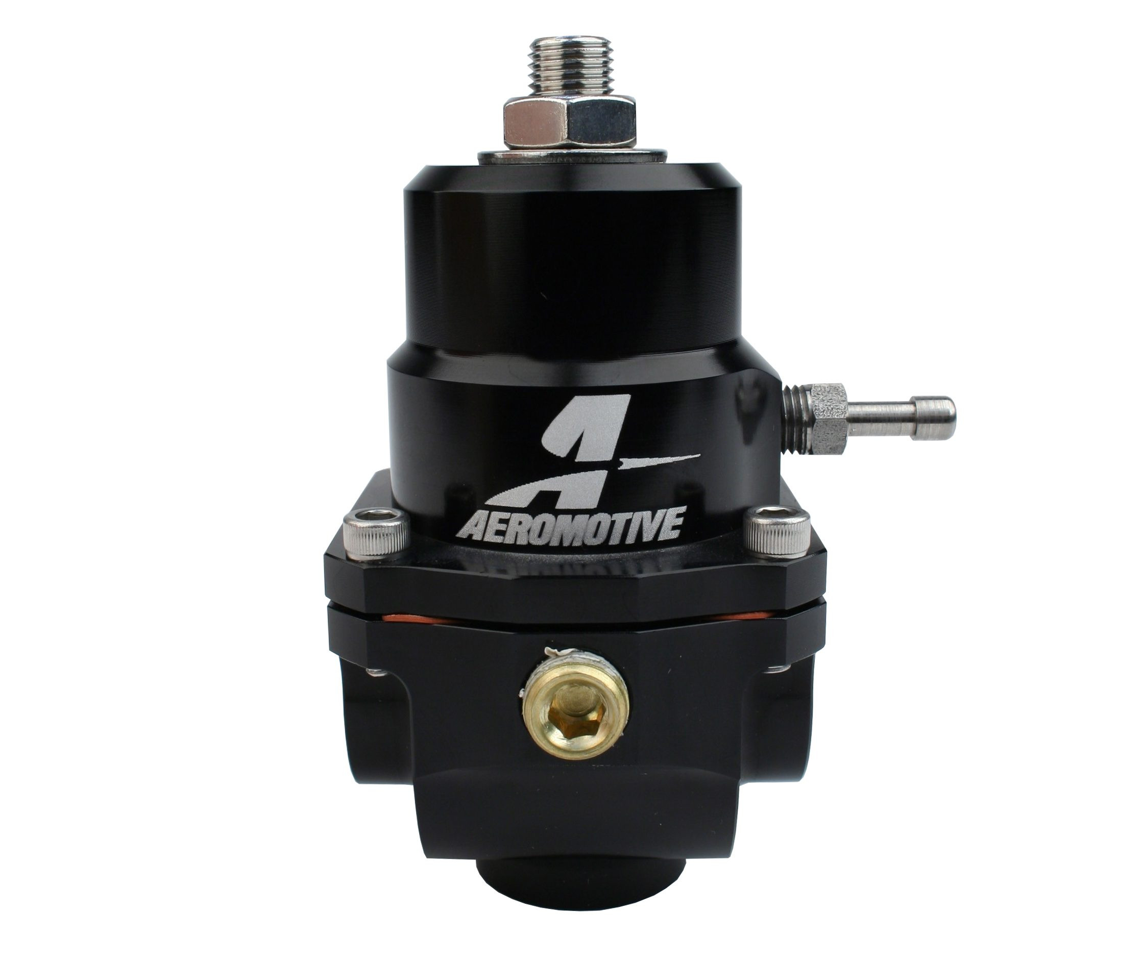 Regulator ciśnienia paliwa Aeromotive X1 Series – EFI Standard Return Style ARE 13303 USA-ARE-13304 P/N 13304 X1 Regulator gaźnikowy Podstawowe ciśnienie paliwa regulowane w zakresie 0.21-1.38 bar (3-20 PSI). Odniesienie do podciśnienie/doładowania. Wzrost 1:1 dla silników doładowanych Kompatybilny z benzyną, etanolem, alkoholem i olejem napędowym. 2x otwory wlotowe/wylotowe ORB -08 po bokach. 1x port powrotny ORB-08 na spodzie 1x port pomiarowy 1 - 1/8″ NPT z wtyczką. 1x port doładowania NPT 1/16″ NPT z króćcem na wąż 5/32″. Kompatybilny z zestawem do konwersji X1 EFI. Powrotu 0.313″ z dopasowaną sprężyną i grzybkiem. Zdolny obsłużyć przepływ do 150 GPH z przewodem powrotnym AN-08. Nadaje się do każdej pompy Aeromotive (do modelu A1000). Uchwyty montażowe w zestawie. Ten produkt nie jest legalny do sprzedaży lub stosowania w pojazdach z kontrolowaną emisją spalin, chyba że jest używany jako bezpośrednia część zamienna odpowiadająca specyfikacji OEM. X1 Zestawy serwisowe/konwersyjne do regulatorów: