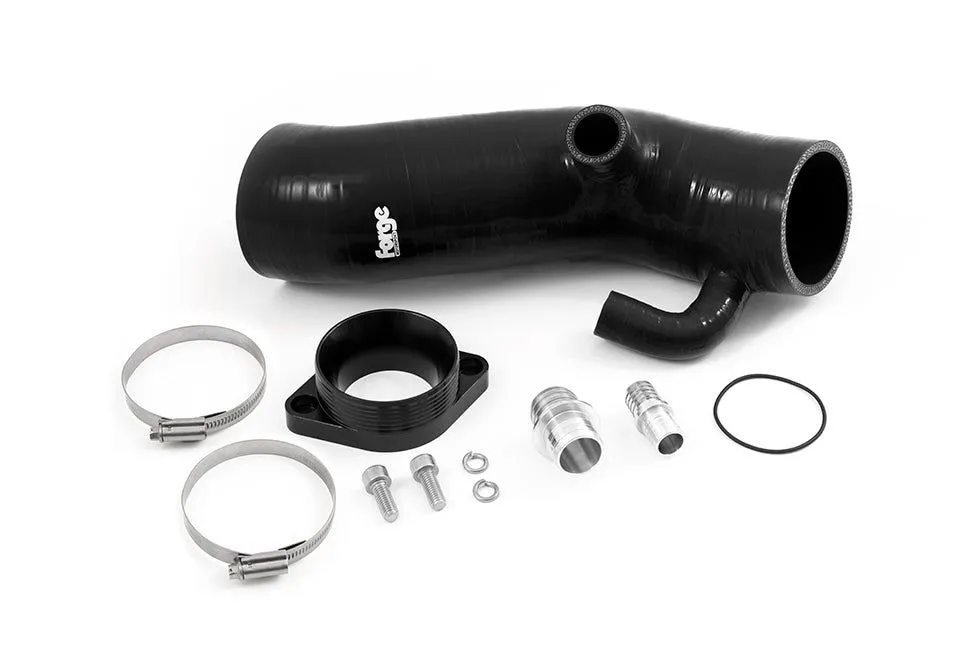 The Forge Motorsport turbo inlet adaptor and high flow inlet pipe has a capacity of more than 59% over the stock item. Not only will you notice the increased performance but a slight change in your engine acoustics can also be heard. As with all Forge Motorsport products we offer a no quibble lifetime guarantee on both the silicone hose and billet adaptor.