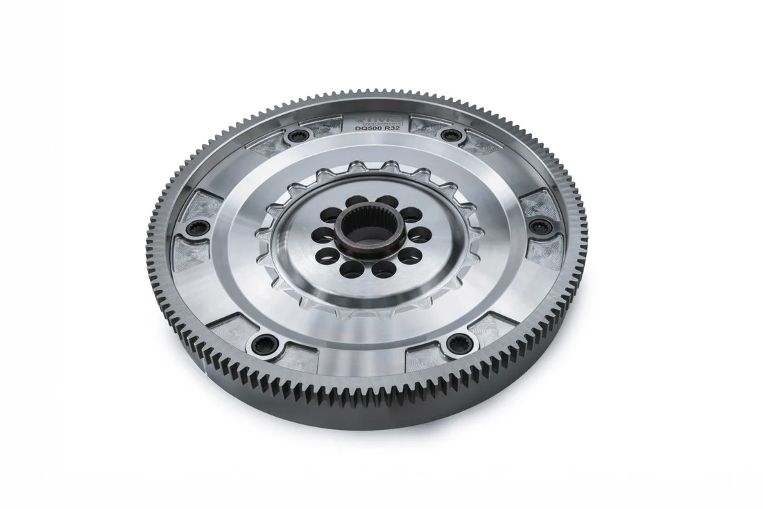 The world's first DSG DQ500 chromoly dual mass flywheel, offers you high performance, best longevity, enhanced throttle response and it is balanced with absolute precision. Presentation and Benefits of the RTMG PERFORMANCE Dual-Mass Flywheel Another innovation in DSG automatic transmission systems from RTMG PERFORMANCE. The benefits of a dual-mass flywheel compared to the previous generation single-mass flywheels are significant. The importance of having two masses in the flywheel lies in smoothing out the explosions created by the combustion of the pistons during the third stroke of ignition. In a six-cylinder TSI or TFSI engine, there are four powerful combustions in a full cycle of 720 degrees (two rotations), corresponding to the engine's power output. These piston explosions, which generate a reciprocating motion, are transformed into rotational motion through the crankshaft, and this motion is then transferred to the flywheel. The dual-mass flywheel acts as a damper for these vibrations. Through its springs, it prevents the peak combustion forces from being transmitted to the gearbox. By smoothing out these forces, smooth power transmission from the engine to the gearbox is achieved, leading to longer component life and preventing the gears from wearing out. The manufacturer designed the dual-mass flywheel for the DQ250 gearboxes to handle up to 420Nm of torque for daily use. But what happens beyond that? When the torque exceeds 420Nm, the springs inside the factory flywheel reach their limit, and the combustion forces beyond this point hammer the entire drivetrain—from the crankshaft and bolts to the gears, axles, and finally to the tires. The factory flywheel was not designed to handle hybrid or big turbo setups, slick tires for launches, or 10,000 RPM. As enthusiasts of vehicle performance and having experienced repeated issues with the DQ250 transmissions in our own 2.0 TFSI race car, we decided to find a solution. Our engineers’ mindset is to design something that enhances performance with better mechanisms and materials. In the new flywheel we designed, we set the bar high in terms of quality, durability, and longevity, allowing it to handle from 770Nm to 1200Nm of torque. It was tested and developed in our own race car. Proof of its success? We managed to break the European record with a 7.8-second run using a 2.0L TSI engine, reaching nearly 300 km/h at Santa Pod Raceway in England in 2022. This achievement motivated us to further invest in this product, as it ensured smooth operation without damage to the transmission, leading us to become European champions. Our latest version is made of high-strength chromoly steel (42CrMo4), and the splines undergo thermal treatment for maximum durability. The springs are twice as strong as the factory ones, but the key improvement is the progressive spring design. The initial springs are softer, allowing the flywheel to operate smoothly at lower loads. Another advantage over the factory flywheel is that ours is modular, meaning it can be serviced or upgraded for even more torque if needed. The new floating design prevents the springs from contacting the moving masses, ensuring smooth operation and longer lifespan of the assembly. For those seeking ultimate performance, every component is dynamically balanced to 0.01G, and the overall weight is 20% lighter than the factory flywheel. Additionally, the internal Teflon components make our dual-mass flywheel more stable at high RPMs, preventing resonances and lateral vibrations. Another very important advantage of our reinforced flywheel is that, since the reinforced springs do not fully compress under higher torques compared to the factory ones, it prevents the bolts between the flywheel and the crankshaft from breaking, as all the impact forces are absorbed by the reinforced springs. The springs operate in a lubricated environment, ensuring that the entire assembly works harmoniously during accelerations and decelerations, whether in racing conditions or daily use. Welcome to the next generation of performance products by RTMG PERFORMANCE. It has harder springs than the factory receiving more torque helping the transmission system in extreme conditions. It is divisible helping to maintain it over time. Dynamic balance 0.01g can performance the maximum horsepower at hi rpm. Tested at fastest 7second TSI engine and DQ250 transmission. Designed and Manufactured in Greece with high technology 5-axis CNC machine. Weight: 8.20 kg For a proper fit on the crankshaft, and because the crankshaft guide is often worn, the flywheel comes with a slightly smaller hole (0.02mm). It may require slight sanding with sandpaper to achieve a perfect fit. The precise fit between the flywheel and crankshaft is crucial at high RPMs, as it ensures perfect balancing of the entire assembly. ATTENTION: ITS ALREADY BALANCED WITH ADVANCED BALANCING METHOD, PLEASE NOT TRY TO BALANCE THE FLYWHEEL AND REMOVE MATERIAL !!! * Suggested for daily and racing use with high boost applications.