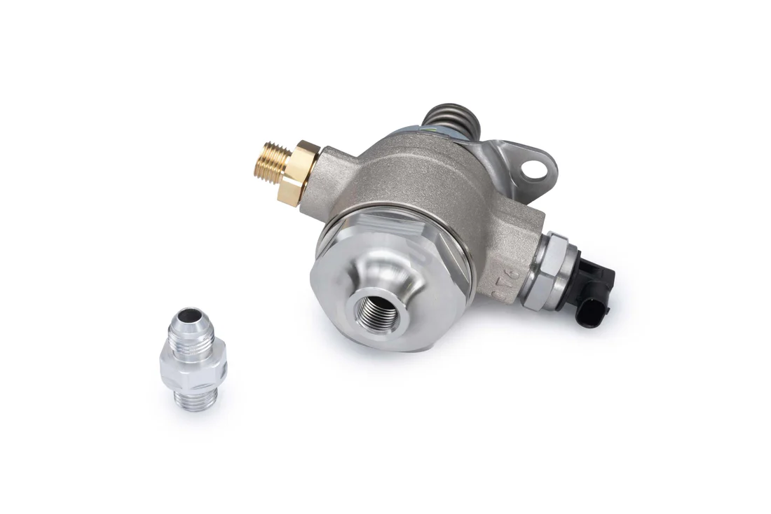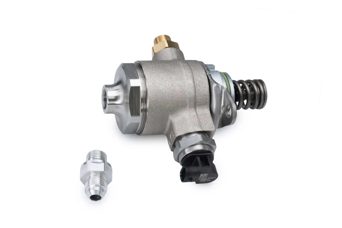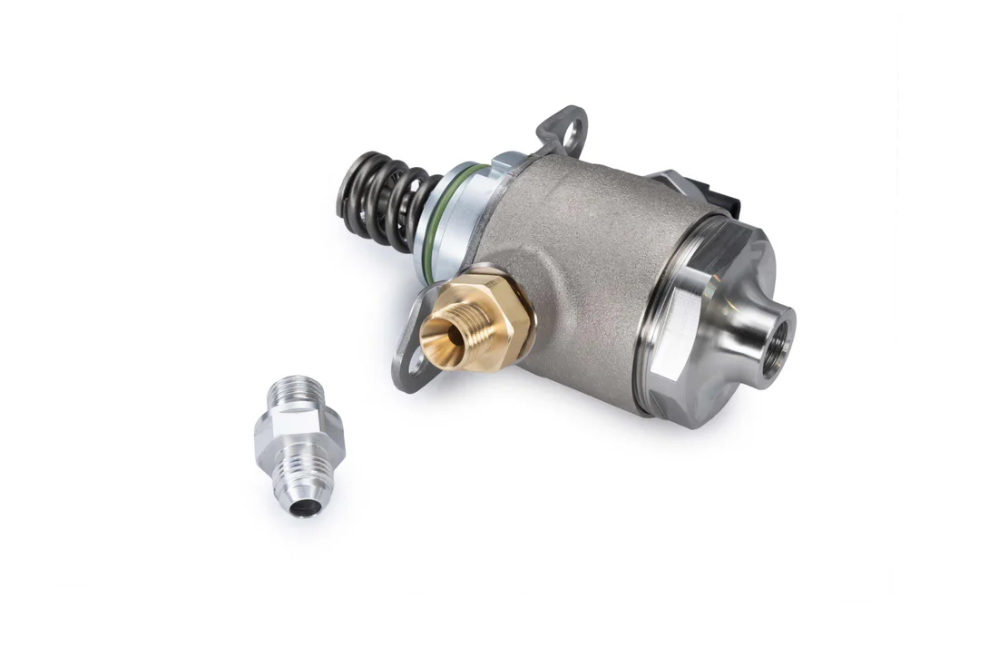 Pompa wysokiego ciśnienia paliwa RTMG Performance – EA111 do 600 KM Pompa wysokiego ciśnienia paliwa RTMG Performance przeznaczona do silników EA111, zaprojektowana z myślą o aplikacjach o mocy do 600 KM. Rozwiązanie zostało opracowane specjalnie dla konfiguracji big turbo bez rury superchargera, gdzie wymagany jest znacznie większy przepływ paliwa oraz wyższe ciśnienie w układzie. RTMG Performance oferuje skuteczne rozwiązanie problemów związanych z ograniczeniami wydajności i ciśnienia paliwa, które pojawiają się przy mocno zmodyfikowanych silnikach. W takich projektach kluczowe jest zwiększenie ciśnienia paliwa powyżej 150 bar, aby zapewnić odpowiednio jednorodną mieszankę paliwowo-powietrzną. Wraz ze wzrostem ciśnienia doładowania oraz obrotów silnika, konieczne jest zapewnienie zarówno wyższego ciśnienia paliwa, jak i większego przepływu. Ta pompa została zaprojektowana tak, aby sprostać tym wymaganiom i zapewnić stabilną pracę oraz niezawodność w zastosowaniach motorsportowych i high-performance. W zestawie Big bore hi-flow fuel piston Billet hi-flow cover AN6 connector