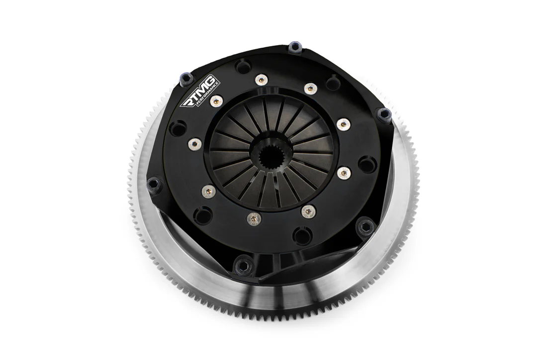 RTMG Performance Twin Disc Clutch Sprzęgło Twin Disc zostało szeroko przetestowane w samochodach drag racing, drift oraz w codziennym użytkowaniu, aby zapewnić idealne połączenie komfortu pracy pedału sprzęgła, wysokiej zdolności przenoszenia momentu obrotowego oraz niezawodności. Zestaw wykorzystuje tarcze cierne wykonane z materiału ceramiczno-metalicznego lub organicznego, produkowane w Niemczech. Sprzęgło posiada zewnętrzną średnicę 200 mm, co pozwala uzyskać bardzo dobrą charakterystykę pracy przy jednoczesnym zachowaniu wysokiej wytrzymałości. Wszystkie elementy eksploatacyjne są dostępne jako części zamienne, dzięki czemu w przypadku zużycia nie ma potrzeby zakupu kompletnego zestawu sprzęgła. Oddzielnie dostępne są m.in.: sprężyna talerzowa sprzęgła pierścień oporowy (fulcrum ring) docisk sprzęgła tarcze sprzęgłowe płyty pośrednie (floater plates) Powierzchnie docisku oraz płyty pośredniej są precyzyjnie honowane, aby zapewnić równomierną i gładką powierzchnię tarcia. Wielowypusty piasty wykonane są z wysokowytrzymałej stali, a następnie poddane obróbce cieplnej, co zwiększa ich twardość powierzchniową i trwałość. Zalecenia dotyczące doboru sprzęgła: Zaleca się wybór sprzęgła o zdolności przenoszenia momentu obrotowego o około 30% wyższej niż maksymalny moment generowany przez silnik, szczególnie jeśli pojazd będzie często wykorzystywany z funkcjami Launch Control oraz Flat Shift. Należy pamiętać, że przy korzystaniu z Launch Control i Flat Shift zużycie sprzęgła rośnie wykładniczo. W przypadku, gdy podparcie osiowe wału korbowego wynosi 180°, zaleca się zastosowanie drugiego łożyska oporowego, ponieważ wał korbowy poddawany jest większym obciążeniom osiowym. * Sprzęgło twin-disc jest elementem eksploatacyjnym i nie jest objęte gwarancją. *** Kolor produktu może różnić się od przedstawionego na zdjęciu. **** Adapter łożyska w zestawie (LUK).