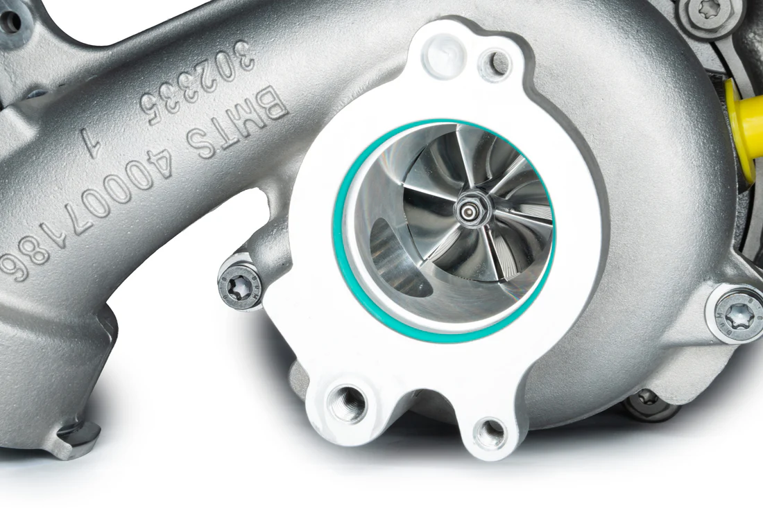 Hybrid Turbocharger 210EVO – do zastosowań do 210 KM Numery referencyjne: BMTS40007186 05E145702L 240223002087 Kod silnika: DXD Turbosprężarka Hybrid 210EVO została zaprojektowana z myślą o osiągach do 210 KM. Dzięki zastosowaniu nowoczesnych technologii obróbki oraz komponentów o podwyższonej wytrzymałości zapewnia szybkie wstawanie turbiny (fast spool) oraz stabilną pracę w szerokim zakresie obrotów. Modernizacja obejmuje zastosowanie większego, frezowanego CNC koła kompresji z aluminium billet, które zwiększa przepływ powietrza i poprawia wydajność turbosprężarki. Obudowa kompresji została precyzyjnie dopasowana i obrobiona CNC zgodnie z geometrią koła kompresji. Turbosprężarka wyposażona jest w nowe łożyska oraz podkładkę oporową, co zwiększa trwałość i niezawodność przy wyższych obciążeniach. Każdy egzemplarz jest dynamicznie wyważany na maszynie VSR, która symuluje rzeczywiste warunki pracy turbiny, zapewniając idealne wyważenie i stabilność pracy. Produkt RTMG Performance został zaprojektowany i wyprodukowany w Grecji z zachowaniem wysokich standardów jakości. Specyfikacja szybka reakcja turbiny (fast spool) duże koło kompresji billet aluminium CNC obróbka obudowy kompresji CNC dopasowana do geometrii wirnika nowe łożyska i podkładka oporowa wydajność przepływu powietrza do 210 KM dynamiczne wyważanie VSR RTMG Performance Quality Made in Greece