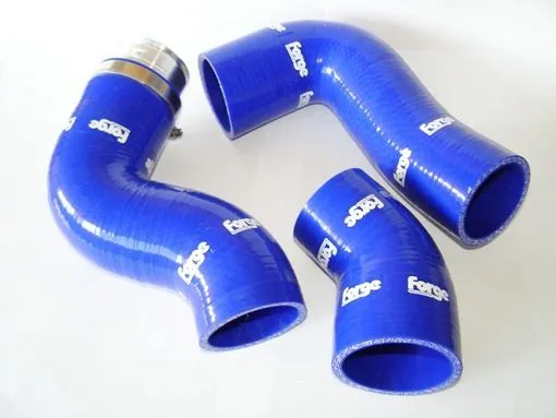 This kit comprises of three silicone hoses complete with CNC alloy couplers and the highest quality stainless clamps. These hoses will withstand greater temperatures and pressures compared with the OEM hoses and they look fantastic. The hoses replace the two intercooler hoses and also the throttle body hose.