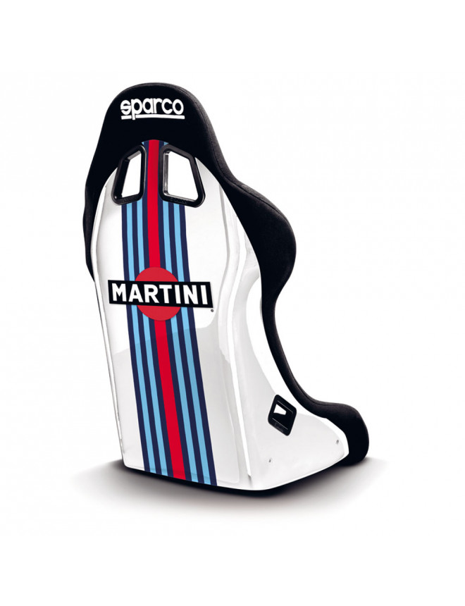 This Sparco Martini Racing QRT FIA Evo seat features a full upholstery with the famous Martini brand colorful stripes. Updated with the QRT technology, this Sparco EVO QRT bucket seat has an anti-slip fabric on the shoulders and the base with a new cushion divided into 2 parts for the best comfort!The shoulder width is restraint for an installation in small vehicles.For the fixings, use lateral fastenings with 290mm spacing. What is the QRT technology?Designed and developed in the italian laboratories, the QRT technology is based on aerospace technologies. This innovative production method is able to generate the lightest and most resistant fiberglass seats on the market with a guarantee of a reduction in total weight of 30% compared to standard seats! Sparco EVO QRT FIA details Approval Sizes 8855-1999 Compatible HANS - Total height YES 90cm Material - Shoulder width QRT 58cm Weight (around) - Lumbar width 7.3kg (seat) / 5.0kg (shell) NC Color - External base width Black 49cm Harness - Total length 5 slots 66cm Fixing - Angle of inclination Lateral (W type) NC