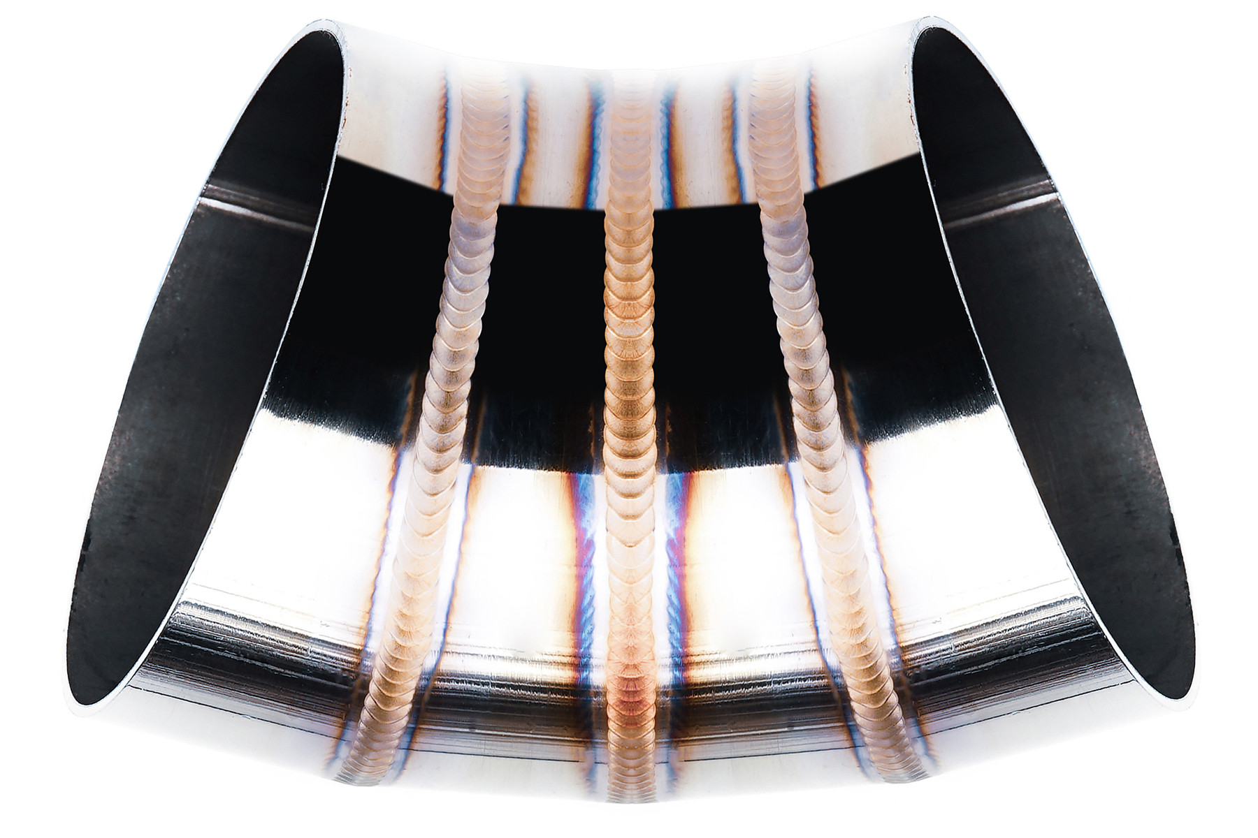 Kolanko nierdzewne z serii "welding porn" o średnicy 57mm i kącie 45 stopni. Artystycznie, ręcznie spawane w komorze argonowej, zachwycają swoim wyglądem – pięknymi, kolorowymi spawami, jak i niezwykle precyzyjnym wykonaniem. Nierdzewne "plastry" cięte na maszynie CNC pod kątem 11,25', są ze sobą idealnie spasowane - bez zadziorów, uskoków itd, tworzą idealny przelot. Wykończenie w wysokim połysku w połączeniu z kolorowymi spawami gwarantują niesamowity efekt wizualny. Kolanka wykonane są ze stali nierdzewnej 304 – można je stosować zarówno w układzie wydechowym, jak i dolotowym.
