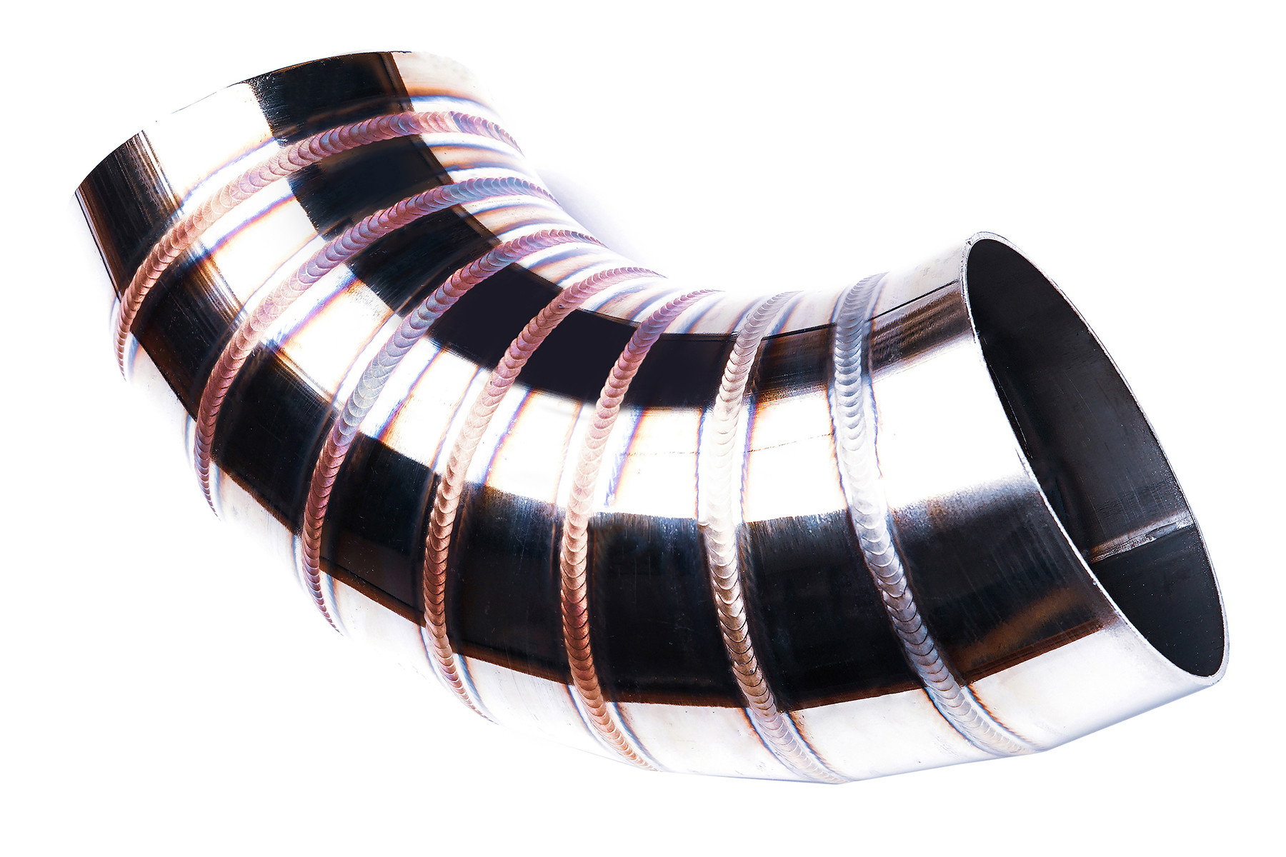 Kolanko nierdzewne z serii "welding porn" o średnicy 63mm i kącie 90 stopni. Artystycznie, ręcznie spawane w komorze argonowej, zachwycają swoim wyglądem – pięknymi, kolorowymi spawami, jak i niezwykle precyzyjnym wykonaniem. Nierdzewne "plastry" cięte na maszynie CNC pod kątem 11,25', są ze sobą idealnie spasowane - bez zadziorów, uskoków itd, tworzą idealny przelot. Wykończenie w wysokim połysku w połączeniu z kolorowymi spawami gwarantują niesamowity efekt wizualny. Kolanka wykonane są ze stali nierdzewnej 304 – można je stosować zarówno w układzie wydechowym, jak i dolotowym.
