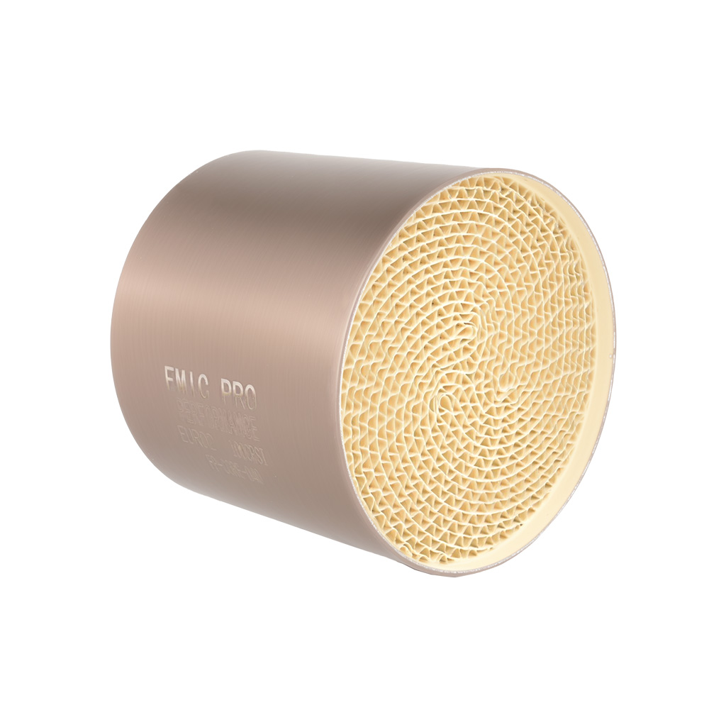Sportowy wkład katalizatora FMIC.PRO Euro 2 100 cpsi Średnica 90mm Długość 80mmWkład katalizatora FMIC.PRO to profesjonalny element przeznaczony do zastosowań sportowych i tuningowych, zapewniający skuteczną redukcję emisji spalin przy zachowaniu wysokiej przepustowości układu wydechowego. Zastosowanie materiałów o podwyższonej odporności termicznej oraz precyzyjnej konstrukcji rdzenia gwarantuje stabilną pracę, długą żywotność i zgodność z wymaganiami norm emisji Euro 2. Główne cechy i zalety: -Skuteczna redukcja emisji spalin – Wkład FMIC.pro eliminuje szkodliwe substancje, zmniejszając emisję tlenków azotu (NOx), tlenków węgla (CO) oraz węglowodorów (HC), ograniczając emisję szkodliwych substancji do atmosfery. -Pasuje do pojazdów benzynowych i z LPG. -Wielowarstwowy rdzeń katalityczny – Konstrukcja rdzenia o zoptymalizowanym układzie kanałów gwarantuje równomierny przepływ spalin oraz zachowanie parametrów przy intensywnej pracy. -Uniwersalne zastosowanie – Wkład pasuje do szerokiej gamy katalizatorów i układów wydechowych, co czyni go idealnym wyborem zarówno do standardowych pojazdów, jak i aut tuningowanych -Wysoka trwałość Dzięki odporności na wysokie temperatury i obciążenia, wkład FMIC.PRO zapewnia długotrwałą efektywność i stabilną pracę w każdych warunkach. -Przepustowość 100 CPSI – Optymalny balans między skuteczną redukcją emisji a swobodnym przepływem spalin, co przekłada się na lepszą wydajność silnika. Specyfikacja techniczna: Średnica całkowita: 90mm Długość: 80mm Średnica wejścia: 70mm Przepustowość (CPSI): 100 Materiał: Stal nierdzewna + wysokiej jakości wkład ceramiczny Norma emisji: Euro 2