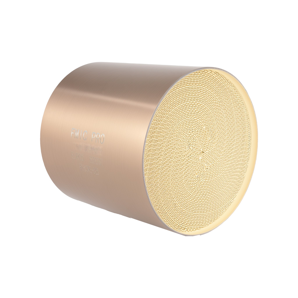 Sportowy wkład katalizatora FMIC.PRO Euro 5 500 cpsi Średnica 100mm Długość 100mm Wkład katalizatora FMIC.PRO to profesjonalny element przeznaczony do zastosowań sportowych i tuningowych, zapewniający skuteczną redukcję emisji spalin przy zachowaniu wysokiej przepustowości układu wydechowego. Zastosowanie materiałów o podwyższonej odporności termicznej oraz precyzyjnej konstrukcji rdzenia gwarantuje stabilną pracę, długą żywotność i zgodność z wymaganiami norm emisji Euro 5. Główne cechy i zalety: -Skuteczna redukcja emisji spalin – Wkład FMIC.pro eliminuje szkodliwe substancje, zmniejszając emisję tlenków azotu (NOx), tlenków węgla (CO) oraz węglowodorów (HC), ograniczając emisję szkodliwych substancji do atmosfery. -Pasuje do pojazdów benzynowych i z LPG. -Wielowarstwowy rdzeń katalityczny – Konstrukcja rdzenia o zoptymalizowanym układzie kanałów gwarantuje równomierny przepływ spalin oraz zachowanie parametrów przy intensywnej pracy. -Uniwersalne zastosowanie – Wkład pasuje do szerokiej gamy katalizatorów i układów wydechowych, co czyni go idealnym wyborem zarówno do standardowych pojazdów, jak i aut tuningowanych -Wysoka trwałość Dzięki odporności na wysokie temperatury i obciążenia, wkład FMIC.PRO zapewnia długotrwałą efektywność i stabilną pracę w każdych warunkach. -Przepustowość 500 CPSI – Optymalny balans między skuteczną redukcją emisji a swobodnym przepływem spalin, co przekłada się na lepszą wydajność silnika. Specyfikacja techniczna: Średnica całkowita: 100 mm Długość: 100mm Średnica wejścia: 90mm Przepustowość (CPSI): 500 Materiał: Stal nierdzewna + wysokiej jakości wkład ceramiczny Norma emisji: Euro 5