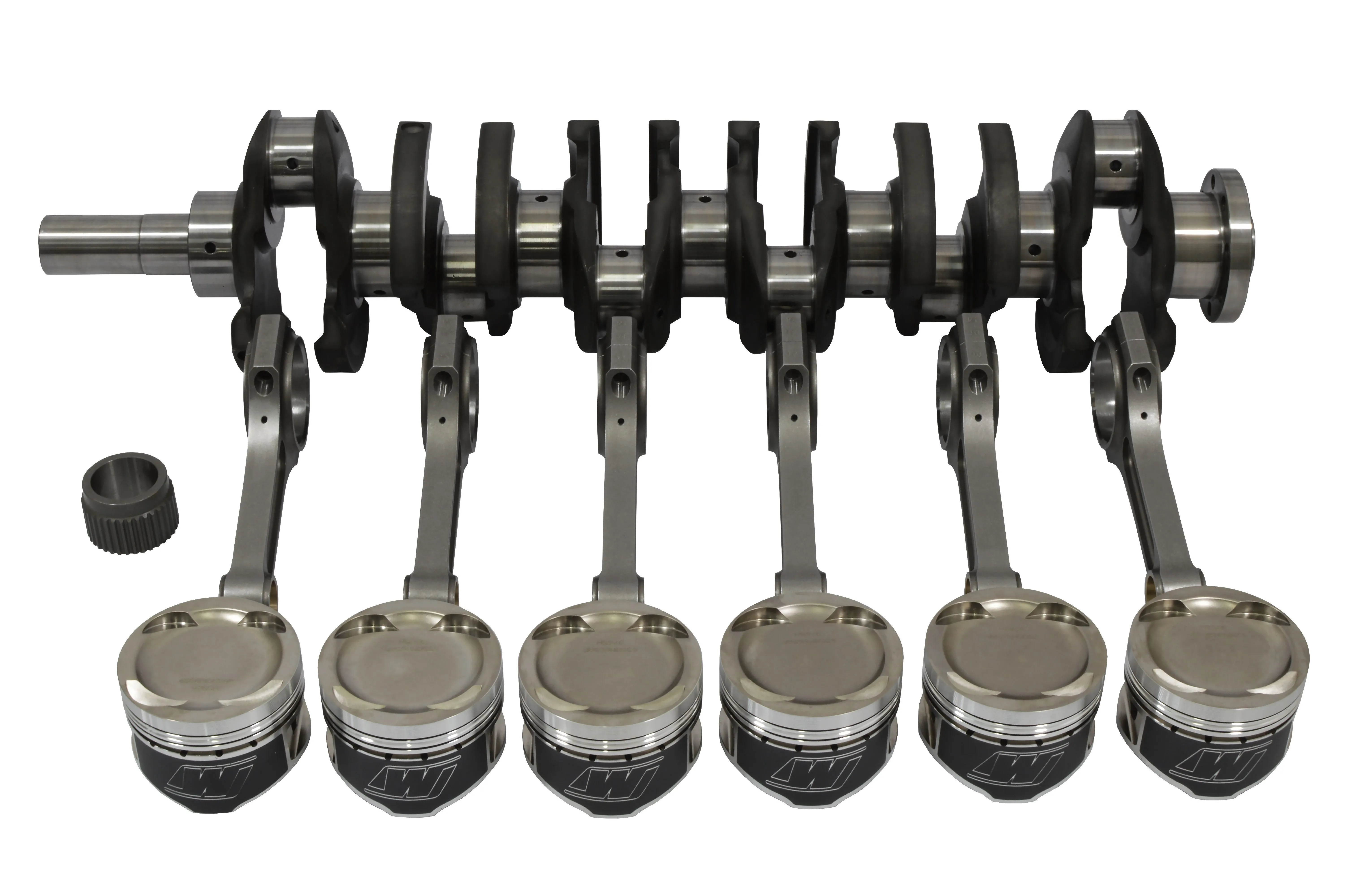 Zestaw części zwiększających pojemność silnika 2JZ nawet do 3.4l. W zestawie znajdują się : - kuty wał FMIC.PRO z wykorbieniem 94mm - kute korbowody I-Beam FMIC.PRO - Kute tłoki Manley PLATINUM SERIES LIGHTWEIGHT PISTONS CR 9:1 - zębatka pompy oleju na wał firmy Brian CrowerWAŁ Biorąc sobie do serca stare powiedzenie, że nie ma mocy bez pojemności z przyjemnością wprowadzamy do oferty kuty wał korbowy FMIC.PRO do silnika 2JZ. Dzięki zastosowaniu naszego komponentu można podnieść pojemność skokową silnika aż do 3,4l. Poniżej kalkulator pojemności w zależności od zastosowanych tłoków: - tłoki 86mm (OEM) - 3275 ccm - tłoki 86,5mm - 3317 ccm - tłoki 87mm - 3351 ccm Dzięki zaawansowanemu procesowi produkcyjnemu na maszynach CNC wał FMIC.PRO jest zdecydowanie lżejszy niż element OEM. Przez spadek masy wirującej silnik może kręcić się wyżej i szybciej. Proces obróbki cieplnej i azotowanie zdecydowanie podnoszą odporność na zużycie w ekstremalnych warunkach, a poprawiony system smarowania poprawia jego żywotność. Podstawowe dane techniczne: - waga 21,9kg (OEM 27,12kg) - wykorbienie 94mm (OEM 86mm)KORBOWODY Komplet kutych korbowodów FMIC.Pro wykonanych w technologii I-beam do silników Toyoty 2JZ-GTE. Najwyższej jakości korbowody FMIC.Pro, wykonane ze kutej stali AISI 4340 i odgazowywane próźniowo. Dzięki zastosowaniu przekroju I-beam osiągają wytrzymałość do 400KM na cylinder. Wzmocniona główka, wyposażona w wysokiej jakości panewkę umożliwa zastosowanie pływającego sworznia. Zaprojektowane z dbałością o każdy szczegół uwzględniając nasze wieloletnie doświadczenie w dostarczaniu najwyższej jakości części do wyczynowych silników. Korbowody zostały stworzone do użytku ze śrubami ARP2000 które znajdują się w zestawie ! Każdy korbowód po obróbce jest śrutowany powierzchniowo. Korbowody FMIC.Pro to idealny wybór do budowy mocnego silnika oferując najwyższą jakość, którą można porównać do światowych liderów branży, w o wiele niższej cenie. Długość: 142mm Sworzeń: 22mm Śruby: 3/8''TŁOKI PLATINUM SERIES LIGHTWEIGHT PISTONS Zaprojektowany specjalnie dla entuzjastów silników Toyoty 2JZ tłoki przygotowane pod custom-owy wał korbowy o podwyższonej wytrzymałości. Tłoki wykonane są z aluminium 2618, czyli o mniejszej zawartości krzemu niż w przypadku konkurencji. W komplecie znajdują się: - komplet tłoków CR 9:1- komplet pierścieni- komplet sworzni- komplet zabezpieczeń sworznia ZĘBATKA FIRMY Brian Crower Wzmocniony napęd pompy oleju do silników 2JZ wykonany jest wysokiej jakości kutego materiału, całkowicie obrabiany CNC. W przeciwieństwie do seryjnego, odlewanego napędu pompy, jest dużo mocniejszy i dokładniej dopasowany. Stroker 2JZ 1200+ - Tłoki 86,5mm