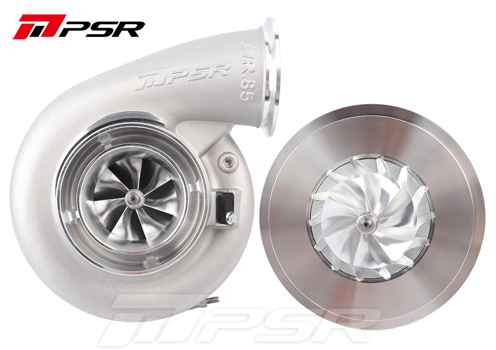 PSR 7382GR Dual Ball Bearing Turbocharger HP Rating 1550 for Class Legal Race Dual ceramic ball bearing system provides optimal turbo response & better durability by reducing the shaft-motion 7+7 Blade GR compressor wheel will get more air flow 9 Blade G-Aero Inconel 713c turbine wheel Anti-Surge ported-shroud compressor inlet, cover integrated with the speed sensor and pressure ports Water and oil fittings included with the super core 8 Options in Turbine Housing HP rated at 1500HP at flywheel Installation Hardware: 3″ flange kit for Comp. Outlet, T4 Gasket/3″ flange kit for Turb. Inlet, 3.5″/4″ flange kit for Turb. Outlet and oil Drain Fitting kit are included by default Oil Feed Fitting(-4AN 1.65mm (0.065″) Orifice) included Compressor Housing: W/O Turbine Housing Turbine Housing: W/O Turbine Housing A stainless steel gasket T4 open included for turbine housing inlet; A flange kit included for turbine housing outlet fits 3.5” OD tubing, slip on and weld. Compressor Wheel: 73.9*102mm, 7+7 Blade Turbine Wheel: 89*81.6mm Compressor Inlet: 5″ Hose Compressor Outlet: 3″ V-Band Turbine Inlet: 3″ V-Band/T4 open/ T4 divided Water Ports: -6AN Oil Feed Fitting(-4AN 1.65mm (0.065″) Orifice) included Oil Drain: -12AN(O-Ring sealed Flange Kit Included)
