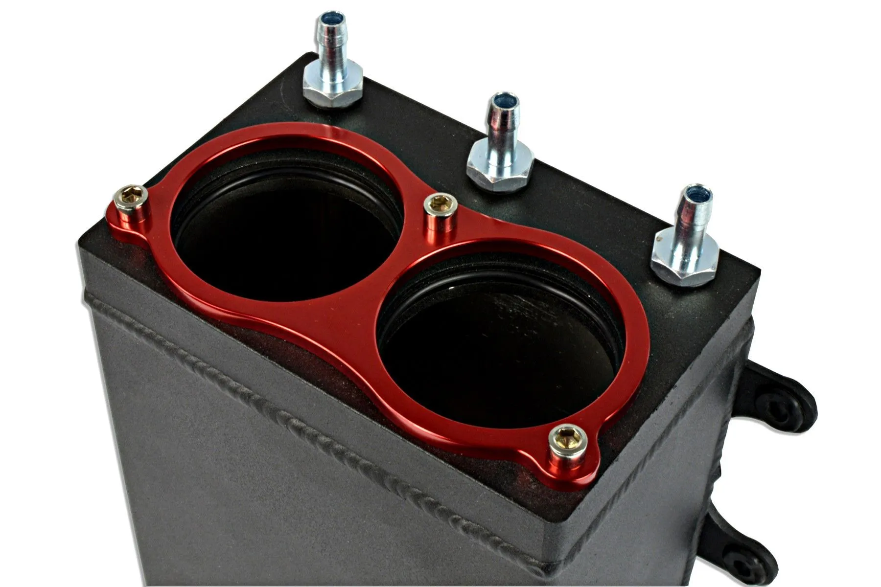 Swirl pot o pojemności 2l, wykonany z wysokiej jakości aluminium malowanego proszkowo na czarno. Zbiornik wyposażony w dwa gniazda na pompy paliwa typu 044, oraz 3 króćce wkręcane na gwint m14x1.5. Niezbędny w drifcie i różnych zawodach typu time attack. Dzięki niemu przy dużych przeciążeniach bocznych nie odpływa paliwo - nawet na długich zakrętach silnik ma odpowiednią mieszankę, gdyż nie brakuje mu benzyny.