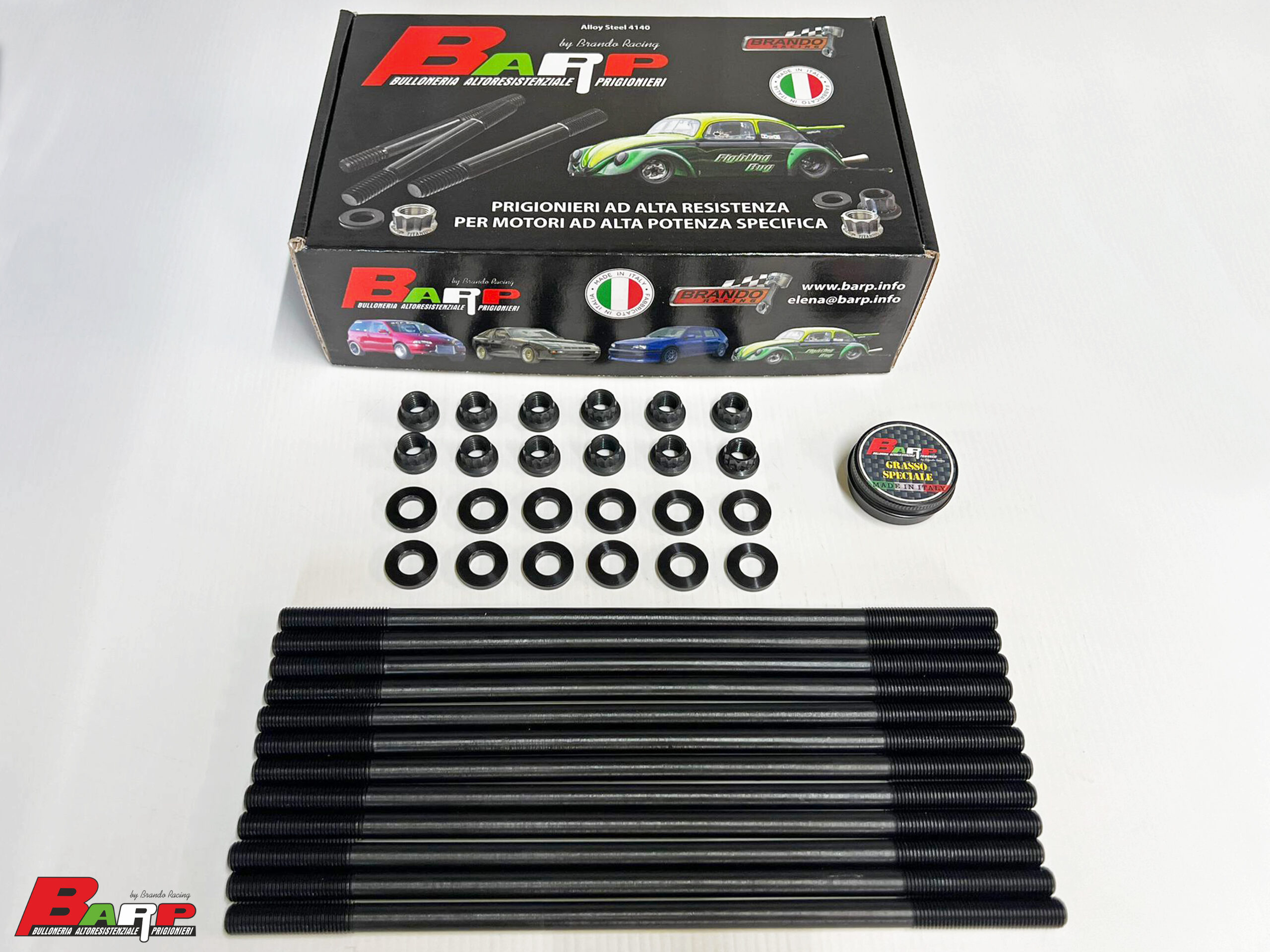 BARP to renomowana włoska marka specjalizująca się w produkcji śrub i nakrętek o ekstremalnie wysokiej wytrzymałości. Wykorzystując innowacyjne materiały zaczerpnięte prosto z przemysłu lotniczego i kosmicznego. Dzięki zaawansowanym procesom projektowania i precyzyjnej produkcji, BARP dostarcza rozwiązania, które spełniają najwyższe standardy jakości i niezawodności. Produkty marki BARP można znaleźć w maszynach przygotowanych do tractor pullingu i drag racingu. Zestaw śrub głowicy BARP to idealne rozwiązanie do zastosowań w tuningu i motosporcie. Montaż śrub BARP zapewnia lepsze uszczelnienie głowicy, zwiększoną stabilność i odporność na ekstremalne warunki pracy. Dzięki zoptymalizowanej konstrukcji redukują odkształcenia głowicy, co ma kluczowe znaczenie dla zachowania szczelności silnika, zwłaszcza w warunkach podwyższonych obciążeń. Montaż śrub BARP zapewnia: Lepsze uszczelnienie głowicy dzięki zwiększonemu naprężeniu wstępnemu, Zwiększoną stabilność i odporność na ekstremalne warunki pracy, Redukcję odkształceń głowicy, co kluczowo wpływa na zachowanie szczelności silnika, Wydłużenie żywotności silnika przy podwyższonych obciążeniach. Zestaw ten jest szczególnie polecany do silników tuningowanych, gdzie generowane są większe naprężenia mechaniczne wynikające z podniesionej mocy i wydajności. Wzmocniona konstrukcja oraz doskonałe właściwości materiałowe sprawiają, że produkt BARP zwiększa żywotność silnika, zapewniając jednocześnie niezawodność i bezpieczeństwo pracy. To doskonały wybór zarówno dla entuzjastów motoryzacji, jak i profesjonalistów, którzy cenią jakość, precyzję oraz niezawodność.