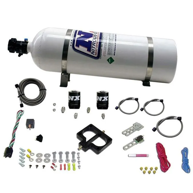 System Płytowy TBI (Silnik Magnum) z butlą 15Lb dla Dodge Czy Twój silnik Magnum ma trochę za mało momentu obrotowego i mocy? System płyty firmy Nitrous Express dla silników Magnum wyposażony jest w technologię Phase 3 Spraybarless dla ostatecznej atomizacji i dystrybucji. Frezowana płyta przykręcana jest między przepustnicą a kolektorem dolotowym, co sprawia, że instalacja jest szybka i łatwa. System ten zawiera elektrozawory Lightning Series do podawania podtlenku azotu i paliwa. Zawiera również przełącznik pełnego przepustu, dzięki czemu podtlenek azotu aktywuje się tylko przy pełnym otwarciu przepustnicy i automatycznie wyłącza się, gdy zdejmiesz nogę z pedału gazu. System zawiera dysze od 35 do 150 koni mechanicznych i może być zaktualizowany do 250 koni mechanicznych dodatkowymi dyszami. Zawiera butlę 15lb, węże ze stali nierdzewnej, uchwyty butli ze stali nierdzewnej, instrukcję montażu w czterech kolorach, przełącznik zbrojenia oraz wszelkie nakrętki, śruby i złączki elektryczne potrzebne do ukończenia instalacji. Pasuje do silników Dodge Magnum o pojemności 3,9 l, 5,2 l i 5,9 l. Jeśli masz system zarządzania silnikiem posprzedażowy, który jest zdolny do dodawania paliwa z wzbogaceniem azotem i chcesz ten system SUCHY (bez elementów paliwowych), skontaktuj się z nami BUTLA Z PODTLAKIEM JEST PUSTA! Instrukcja PDF