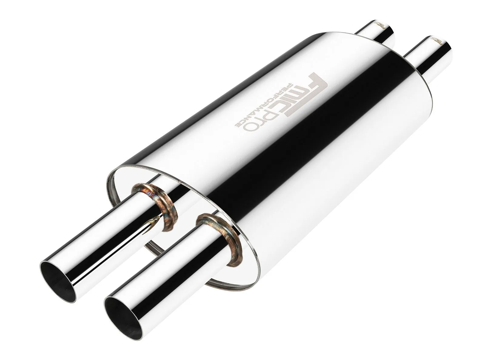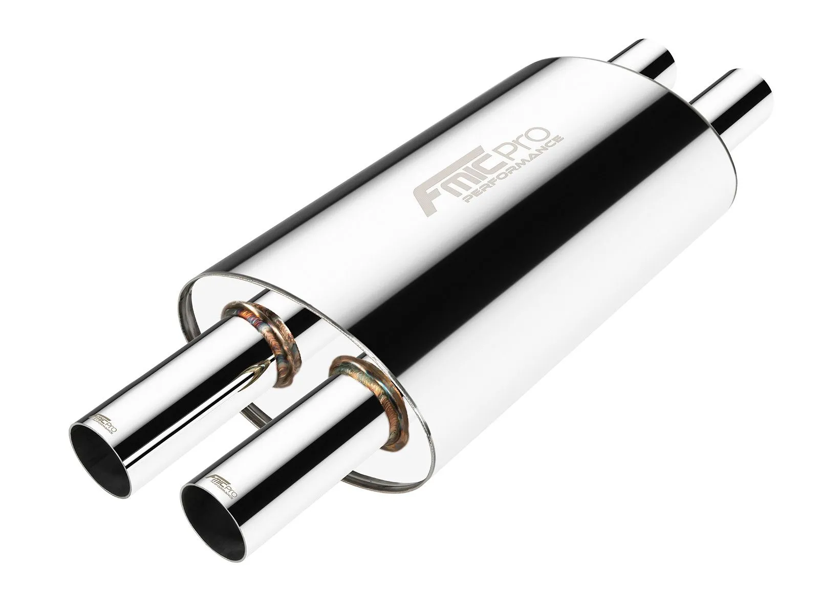 Tłumiki FMIC Pro to jedne z najbardziej zaawansowanych tłumików przelotowych dostępnych na rynku tuningowym. Wykonane w 100% ze stali nierdzewnej gatunku 304, niezwykle precyzyjnie, ręcznie spawane w komorze argonowej, gwarantują niesamowity wygląd i wytrzymałość. Wewnętrzna budowa tłumika porównywalna jest do produktów światowych liderów branży, składa się z kilku warstw: nierdzewna rura perforowana nierdzewna siatka zapobiegająca wypalaniu materiału tłumiącego oraz przedostawaniu się wełny nierdzewnej do przelotowej strefy tłumika nierdzewna wełna będąca pierwszym materiałem wygłuszeniowym, odporna na wypalanie włókno ognioodporne będące drugą warstwą materiału wygłuszeniowego, zapobiegająca "brzęczeniu" tłumika Tłumiki przelotowe FMIC Pro wykończone są w wysokim połysku, gwarantują znakomity przelot spalin, zachowując rasowe brzmienie tuningowej jednostki napędowej. Tłumik można stosować zarówno jako środkowy, jak i końcowy. Odstęp pomiędzy wyjściami pozwala na montaż równolegle dwóch flansz lub v-bandów, co znacznie ułatwia używanie go jako tłumika środkowego. Pozostawienie dwóch nierdzewnych wylotów lub uzbrojenie ich w dodatkowe, tuningowe końcówki sprawia, że znakomicie sprawdzi się również jako tłumik końcowy. Wloty - 57mm Wyloty - 57mm Średnice puszki - 250 x 150mm Dł. puszki - 425mm Dł. całkowita 730mm