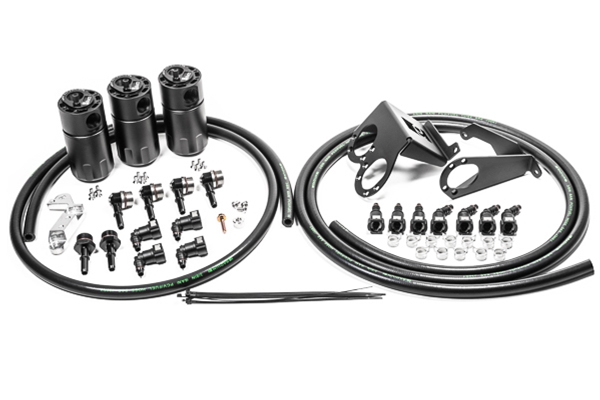 Radium Engineering catch cans feature large 10AN ORB ports, a 4AN ORB drain port, 2-step oil separation baffling, and an O-ring sealed dipstick. These kits include everything needed for a complete installation. The catch can draws out oil and water condensation from the crankcase gasses that would otherwise be drawn into the intake manifold. Furthermore, the closed system prevents unwanted oil vapors from entering into the cabin. FEATURES Effectively raises the octane and increased engine performance from cleaner inlet air Prevents oil buildup in the intake or intercooler system walls, throttle body, intake manifold, etc. Excessive oil collection can be an indicator of a damaged engine. Lowers hydrocarbon emissions Capacity: 7 fluid ounces 20-0987-FL TRIPLE CATCH CAN KIT, 14-19 CORVETTE LT1, FLUID LOCK COMPATIBILITY 14-19 Corvette LT1 (Wet Sump) 14-19 Corvette LT1 (Dry Sump) This triple catch can kit includes both the PCV and dual CCV catch can kits for the ultimate in engine protection. INCLUDES Baffled oil catch cans with integrated condenser and dipstick Anodized aluminum mounting brackets Polished billet aluminum ground plate SAE quick connect fittings Stainless mounting hardware 3/8" PCV rubber hose Spring clamps Instrucion PDF