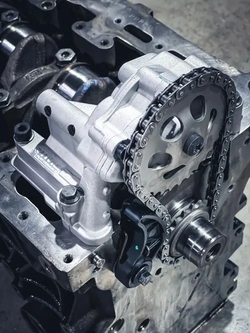 Silnik 2.0 TFSI jest popularnym wyborem wśród entuzjastów osiągów ze względu na imponującą moc i niezawodność. Jak każdy silnik, opiera się jednak na kluczowych podzespołach, aby działać prawidłowo. Jednym z nich jest pompa oleju, odpowiadająca za stałe dostarczanie czystego oleju do smarowania ruchomych części. Ulepszona wyścigowa pompa oleju do silnika 2.0 TFSI zapewnia lepsze osiągi i niezawodność niż pompa seryjna. Zastosowano w niej wirnik o większej średnicy oraz zoptymalizowaną geometrię, co pozwala uzyskać wyższe wydatki i lepsze ciśnienie oleju. Dzięki temu silnik otrzymuje odpowiednią ilość oleju nawet w najbardziej wymagających warunkach. Ponadto ulepszona wyścigowa pompa oleju wykonana jest z wysokiej jakości materiałów i obrobiona z precyzją, z dużo ciaśniejszymi tolerancjami niż w pompie seryjnej. Oznacza to mniejsze ryzyko awarii nawet w ekstremalnych warunkach. Pompa ma także szereg udoskonaleń konstrukcyjnych zwiększających trwałość i żywotność, takich jak wzmocnione punkty mocowania oraz wzmocnione koło napędowe. Ulepszona wyścigowa pompa oleju jest bezpośrednim zamiennikiem pompy seryjnej, co ułatwia montaż. Jest również kompatybilna z seryjnym filtrem oleju, chłodnicą oleju i innymi elementami silnika, więc nie ma potrzeby wprowadzania dodatkowych modyfikacji. Podsumowując, ulepszona wyścigowa pompa oleju do silnika 2.0 TFSI to niezbędny element dla osób chcących maksymalnie wykorzystać potencjał swojego silnika. Dzięki wyższemu przepływowi, większemu ciśnieniu oleju i zwiększonej trwałości stanowi kluczową modernizację dla każdego poważnego entuzjasty osiągów. Do 25% większa objętość i zwiększony przepływ