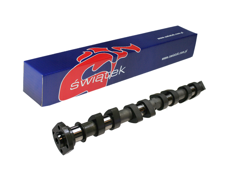Tuningowy wałek rozrządu dolotowy Świątek BMW 1.8 IS M42 B18 Stage GT/R Krzywa dolotowa (seria) Kąt alfa / ustawienie krzywek Luzy zaworowe Wznios Czas otwarcia - hydr. Całk. 1.0 mm 2,0 mm 10.6mm 262° 226° 209° Krzywa wylotowa (seria) Wznios Czas otwarcia Całk. 1.0 mm 2,0 mm - - - - Wałki rozrządu zmieniają charakterystykę pracy silnika – poprawiają przebieg mocy i momentu obrotowego silnika. Wśród wałków sportowych produkowanych w firmie Świątek rozróżniamy typy: W zależności od typu wałka, konieczne są dodatkowe modyfikacje w celu uzyskania prawidłowej pracy GT – wałki przeznaczone do codziennej eksploatacji samochodu. Zalecane jest wykonanie strojenia silnika na hamowni (chip-tuning). Przyrost mocy i momentu około 10%. GT/R – mocniejsze wałki GT. Konieczne strojenie silnika na hamowni. Przyrost mocy i momentu około 10-20%. R – wałki rajdowe, nastawione na wyższą moc i moment w większym zakresie obrotów. sportowe przełożenia skrzyni biegów itp.) i strojenie silnika na hamowni W – wałki wyścigowe, poprawiają maksymalnie moc i moment. Przeróbki podobne jak dla wałków rajdowych. Osiągi mocy powyżej 100 KM z 1000 cm3 silnika.