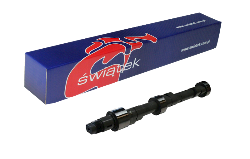 Tuningowy wałek rozrządu lewy Świątek Porsche 911S 2.4 6-cyl Stage R / W Krzywa dolotowa (seria) Kąt alfa / ustawienie krzywek Luzy zaworowe Wznios Czas otwarcia - - Całk. 1.0 mm 2,0 mm - - - - Krzywa wylotowa (seria) Wznios Czas otwarcia Całk. 1.0 mm 2,0 mm - - - - Wałki rozrządu zmieniają charakterystykę pracy silnika – poprawiają przebieg mocy i momentu obrotowego silnika. Wśród wałków sportowych produkowanych w firmie Świątek rozróżniamy typy: W zależności od typu wałka, konieczne są dodatkowe modyfikacje w celu uzyskania prawidłowej pracy GT – wałki przeznaczone do codziennej eksploatacji samochodu. Zalecane jest wykonanie strojenia silnika na hamowni (chip-tuning). Przyrost mocy i momentu około 10%. GT/R – mocniejsze wałki GT. Konieczne strojenie silnika na hamowni. Przyrost mocy i momentu około 10-20%. R – wałki rajdowe, nastawione na wyższą moc i moment w większym zakresie obrotów. sportowe przełożenia skrzyni biegów itp.) i strojenie silnika na hamowni W – wałki wyścigowe, poprawiają maksymalnie moc i moment. Przeróbki podobne jak dla wałków rajdowych. Osiągi mocy powyżej 100 KM z 1000 cm3 silnika.