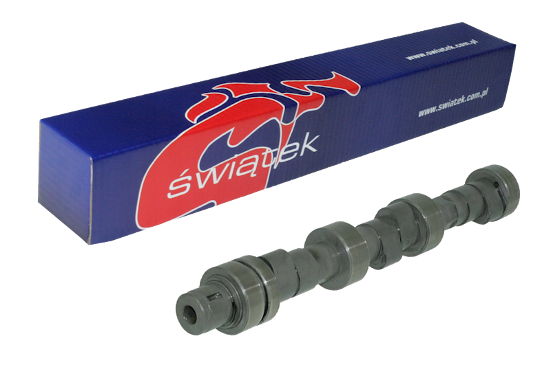 Tuningowy wałek rozrządu lewy Świątek Porsche 964 3,6 12v 6-cyl GR/R 12v OE 96824607 Stage 1 Krzywa dolotowa (seria) Kąt alfa / ustawienie krzywek Luzy zaworowe Wznios Czas otwarcia - serial Całk. 1.0 mm 2,0 mm 8,00mm (8,00 mm) 292° (283°) - 239° (229°) Krzywa wylotowa (seria) Wznios Czas otwarcia Całk. 1.0 mm 2,0 mm 7,35mm (7,35 mm) 282° (275°) - 227° (218°) Wałki rozrządu zmieniają charakterystykę pracy silnika – poprawiają przebieg mocy i momentu obrotowego silnika. Wśród wałków sportowych produkowanych w firmie Świątek rozróżniamy typy: W zależności od typu wałka, konieczne są dodatkowe modyfikacje w celu uzyskania prawidłowej pracy GT – wałki przeznaczone do codziennej eksploatacji samochodu. Zalecane jest wykonanie strojenia silnika na hamowni (chip-tuning). Przyrost mocy i momentu około 10%. GT/R – mocniejsze wałki GT. Konieczne strojenie silnika na hamowni. Przyrost mocy i momentu około 10-20%. R – wałki rajdowe, nastawione na wyższą moc i moment w większym zakresie obrotów. sportowe przełożenia skrzyni biegów itp.) i strojenie silnika na hamowni W – wałki wyścigowe, poprawiają maksymalnie moc i moment. Przeróbki podobne jak dla wałków rajdowych. Osiągi mocy powyżej 100 KM z 1000 cm3 silnika.
