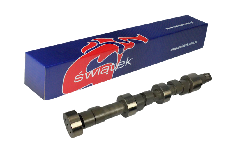 Tuningowy wałek rozrządu lewy Świątek Porsche Carrera 3.0 6-cyl Stage R Krzywa dolotowa (seria) Kąt alfa / ustawienie krzywek Luzy zaworowe Wznios Czas otwarcia - Seryjne Całk. 1.0 mm 2,0 mm 7.8mm 326° - 254° Krzywa wylotowa (seria) Wznios Czas otwarcia Całk. 1.0 mm 2,0 mm 6.95mm 289° - 228° Wałki rozrządu zmieniają charakterystykę pracy silnika – poprawiają przebieg mocy i momentu obrotowego silnika. Wśród wałków sportowych produkowanych w firmie Świątek rozróżniamy typy: W zależności od typu wałka, konieczne są dodatkowe modyfikacje w celu uzyskania prawidłowej pracy GT – wałki przeznaczone do codziennej eksploatacji samochodu. Zalecane jest wykonanie strojenia silnika na hamowni (chip-tuning). Przyrost mocy i momentu około 10%. GT/R – mocniejsze wałki GT. Konieczne strojenie silnika na hamowni. Przyrost mocy i momentu około 10-20%. R – wałki rajdowe, nastawione na wyższą moc i moment w większym zakresie obrotów. sportowe przełożenia skrzyni biegów itp.) i strojenie silnika na hamowni W – wałki wyścigowe, poprawiają maksymalnie moc i moment. Przeróbki podobne jak dla wałków rajdowych. Osiągi mocy powyżej 100 KM z 1000 cm3 silnika.