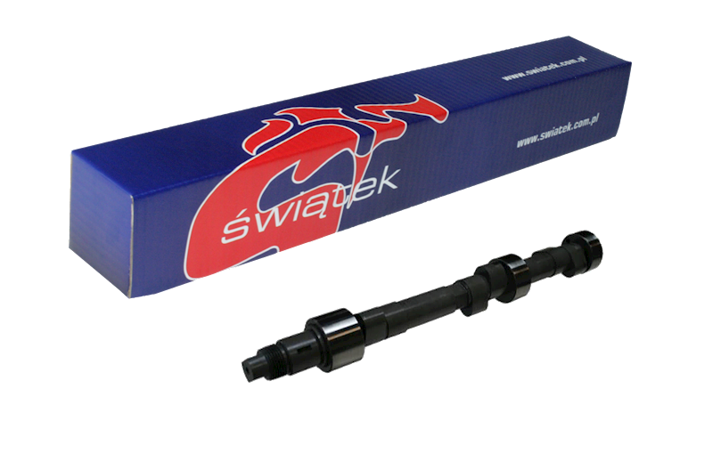 Tuningowy wałek rozrządu prawy Świątek Porsche 911S 2.4 6-cyl Stage R / W Krzywa dolotowa (seria) Kąt alfa / ustawienie krzywek Luzy zaworowe Wznios Czas otwarcia - - Całk. 1.0 mm 2,0 mm - - - - Krzywa wylotowa (seria) Wznios Czas otwarcia Całk. 1.0 mm 2,0 mm - - - - Wałki rozrządu zmieniają charakterystykę pracy silnika – poprawiają przebieg mocy i momentu obrotowego silnika. Wśród wałków sportowych produkowanych w firmie Świątek rozróżniamy typy: W zależności od typu wałka, konieczne są dodatkowe modyfikacje w celu uzyskania prawidłowej pracy GT – wałki przeznaczone do codziennej eksploatacji samochodu. Zalecane jest wykonanie strojenia silnika na hamowni (chip-tuning). Przyrost mocy i momentu około 10%. GT/R – mocniejsze wałki GT. Konieczne strojenie silnika na hamowni. Przyrost mocy i momentu około 10-20%. R – wałki rajdowe, nastawione na wyższą moc i moment w większym zakresie obrotów. sportowe przełożenia skrzyni biegów itp.) i strojenie silnika na hamowni W – wałki wyścigowe, poprawiają maksymalnie moc i moment. Przeróbki podobne jak dla wałków rajdowych. Osiągi mocy powyżej 100 KM z 1000 cm3 silnika.