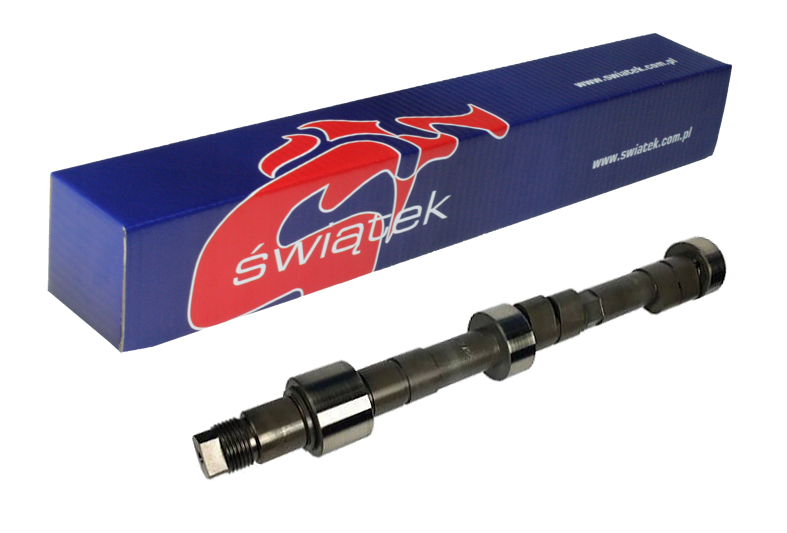 Tuningowy wałek rozrządu prawy Świątek Porsche 911SC 12v Stage GT/R Krzywa dolotowa (seria) Kąt alfa / ustawienie krzywek Luzy zaworowe Wznios Czas otwarcia - - Całk. 1.0 mm 2,0 mm 8.15mm 288° - 259° Krzywa wylotowa (seria) Wznios Czas otwarcia Całk. 1.0 mm 2,0 mm 7.65mm 272° - 242° Wałki rozrządu zmieniają charakterystykę pracy silnika – poprawiają przebieg mocy i momentu obrotowego silnika. Wśród wałków sportowych produkowanych w firmie Świątek rozróżniamy typy: W zależności od typu wałka, konieczne są dodatkowe modyfikacje w celu uzyskania prawidłowej pracy GT – wałki przeznaczone do codziennej eksploatacji samochodu. Zalecane jest wykonanie strojenia silnika na hamowni (chip-tuning). Przyrost mocy i momentu około 10%. GT/R – mocniejsze wałki GT. Konieczne strojenie silnika na hamowni. Przyrost mocy i momentu około 10-20%. R – wałki rajdowe, nastawione na wyższą moc i moment w większym zakresie obrotów. sportowe przełożenia skrzyni biegów itp.) i strojenie silnika na hamowni W – wałki wyścigowe, poprawiają maksymalnie moc i moment. Przeróbki podobne jak dla wałków rajdowych. Osiągi mocy powyżej 100 KM z 1000 cm3 silnika.