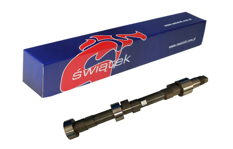 Tuningowy wałek rozrządu prawy Świątek Porsche 911SC 3.0 12v Stage GR/R Krzywa dolotowa (seria) Kąt alfa / ustawienie krzywek Luzy zaworowe Wznios Czas otwarcia - Seryjne Całk. 1.0 mm 2,0 mm 8.77mm 286° 263° 243° Krzywa wylotowa (seria) Wznios Czas otwarcia Całk. 1.0 mm 2,0 mm 8.76mm 279° 257° 237° Wałki rozrządu zmieniają charakterystykę pracy silnika – poprawiają przebieg mocy i momentu obrotowego silnika. Wśród wałków sportowych produkowanych w firmie Świątek rozróżniamy typy: W zależności od typu wałka, konieczne są dodatkowe modyfikacje w celu uzyskania prawidłowej pracy GT – wałki przeznaczone do codziennej eksploatacji samochodu. Zalecane jest wykonanie strojenia silnika na hamowni (chip-tuning). Przyrost mocy i momentu około 10%. GT/R – mocniejsze wałki GT. Konieczne strojenie silnika na hamowni. Przyrost mocy i momentu około 10-20%. R – wałki rajdowe, nastawione na wyższą moc i moment w większym zakresie obrotów. sportowe przełożenia skrzyni biegów itp.) i strojenie silnika na hamowni W – wałki wyścigowe, poprawiają maksymalnie moc i moment. Przeróbki podobne jak dla wałków rajdowych. Osiągi mocy powyżej 100 KM z 1000 cm3 silnika.