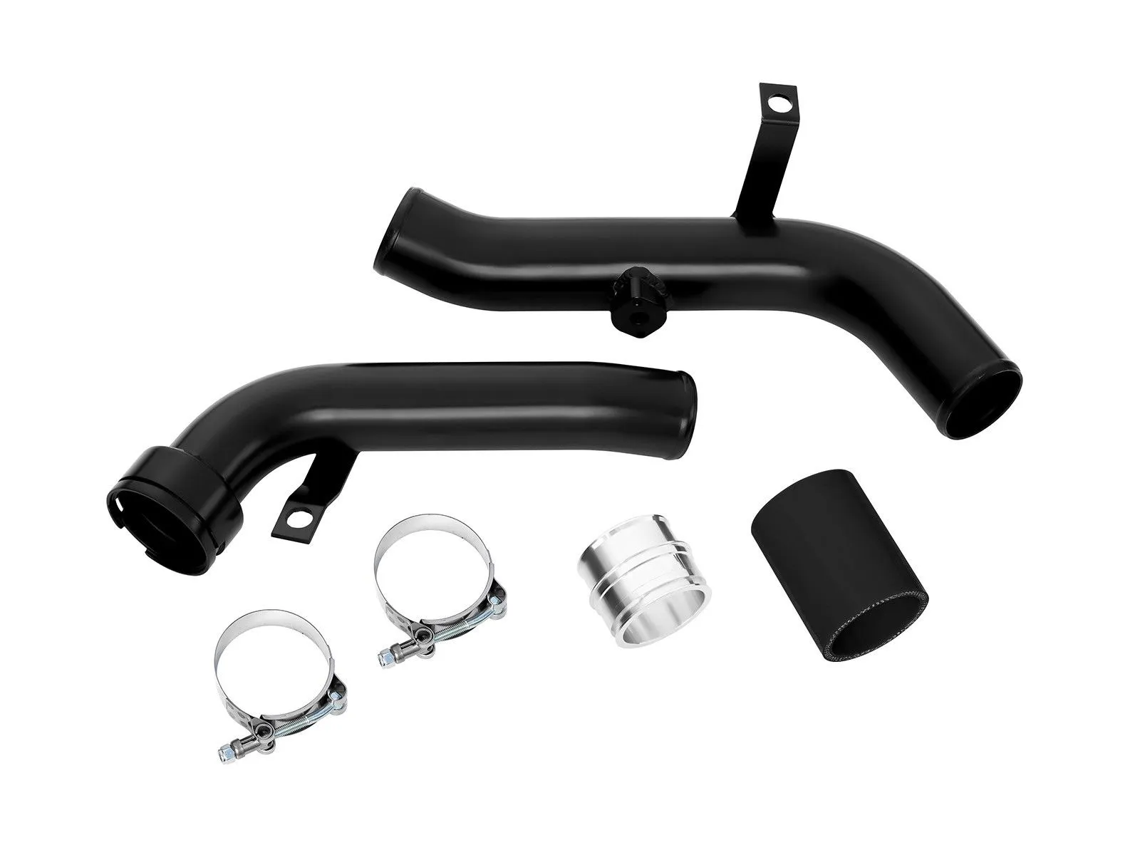 Discharge Pipe to zestaw rur do tunignu układu dolotowego silnika. Jedna to rura wylotowa z turbiny o zwiększonej średnicy ,która znacząco zmniejsza zawirowania oraz poprawia wydajność i działanie trubosprężarki. Druga to rura do przepustnicy. Posiadaja one oryginalne mocowania i zastępują one seryjne rury których wąski przekój utrudnia podniesienie mocy silnika. Nasz zamiennik wykonany jest z aluminium przez co jest zdecydowanie wytrzymalszy niż seryjne elementy które lubią pękać. Zestaw jest wykończony w czarnym matowym lakierze dzięki czemu nie odróżnia sie od reszty części spod maski. Zastosowanie: Poprzeczny silnik 2.0 TSI : CCTA / CBFA Pasuje do: For Audi TT MK2 2.0T TSi 2009 For VW MK5 GTi 2.0T TSi 2009 For VW MK6 GTi 2.0T TSi 2010 For VW Jetta MK5 2.0T TSi 2009 For VW Tiguan 2.0T TSi 2009 For VW Scirocco 2.0T Tsi 2009 UWAGA: Nie pasuje do Jetta 2013+ Zestaw zawiera: Rura wylotowa turbo (Turbo Discharge Pipe Conversion - Turbo outlet) 1szt Rura przepustnicy o wysokim przepływie (Charge Intercooler Pipe Conversion - Throttle pipe) 1szt Obejmy nierdzewne 2szt Łącznik aluminiowy 1szt Łącznik silikonowy 1szt Kolor - Czarny